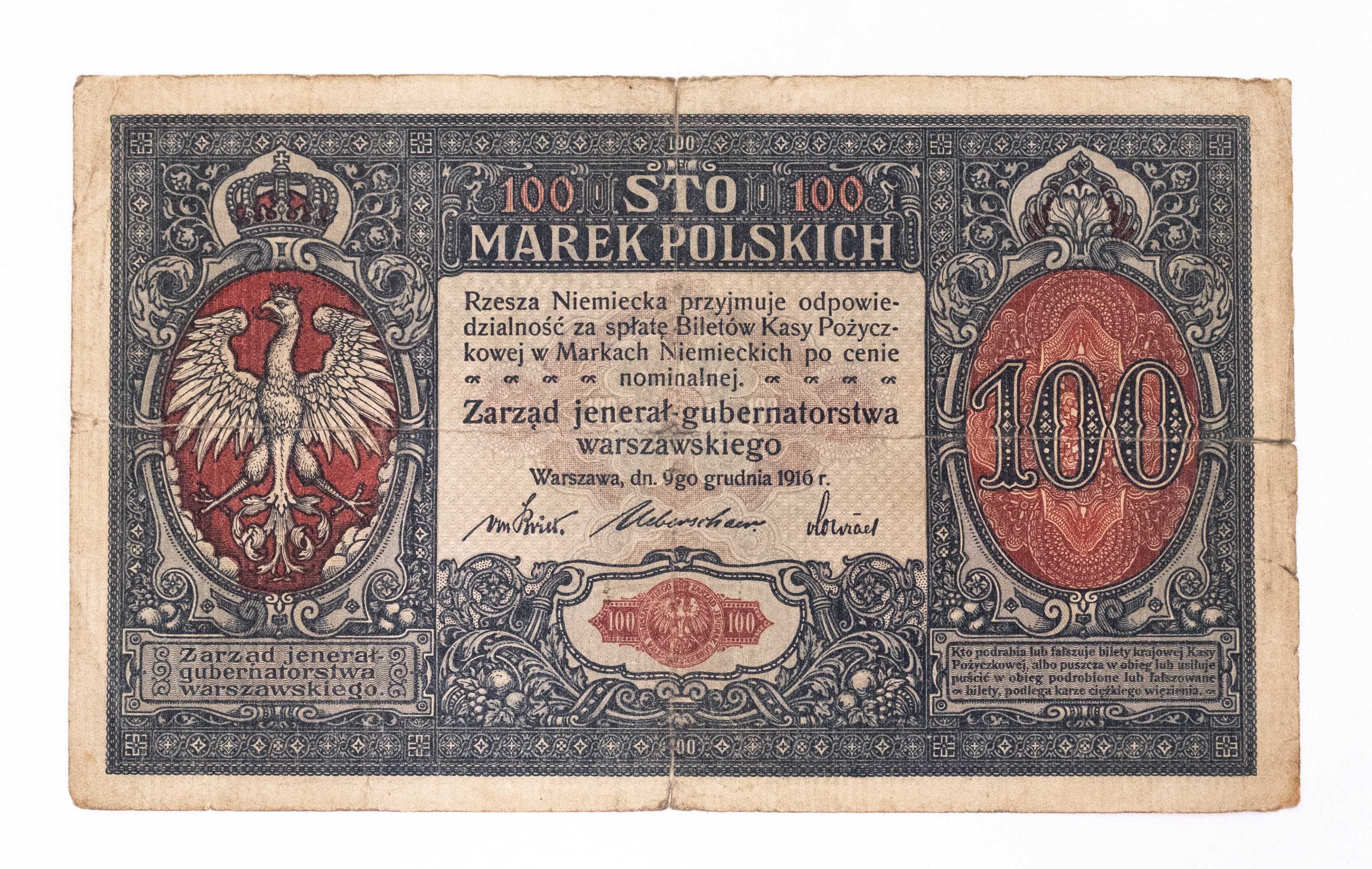 Generalne Gubernatorstwo Warszawskie, 100 marek polskich 9.12.1916, jenerał, Seria A.