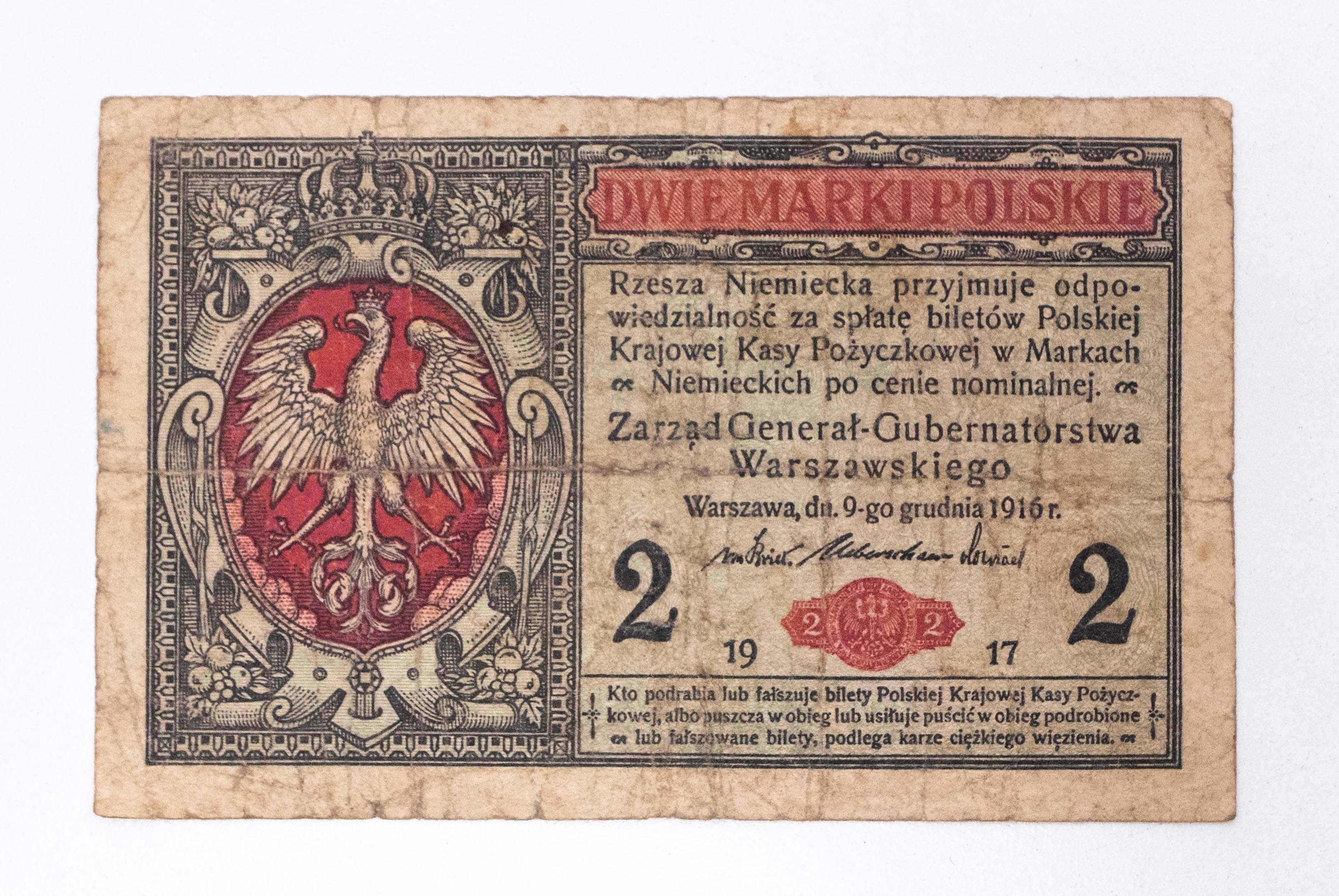 Banknot z długiego obiegu, naddarcia przy marginesach, prześwit. Seria B 0436738. Odmiana ... Generał ...