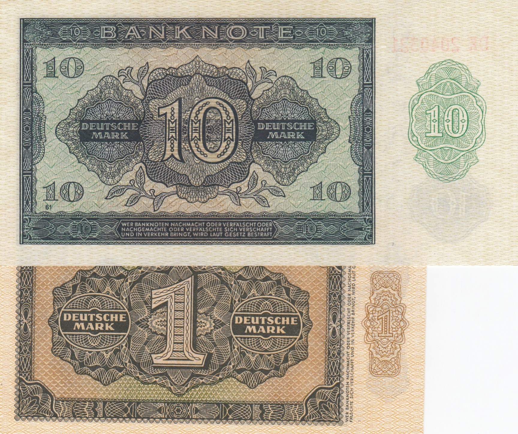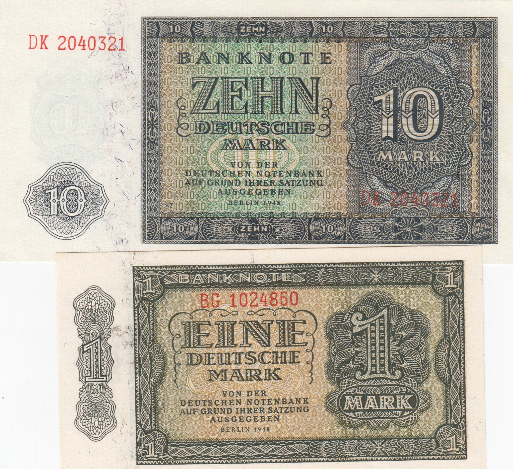 Germany- Democratic Republic, 1 Mark and 10 Mark, 1948, UNC, p9, p12, (Total 2 banknotes)