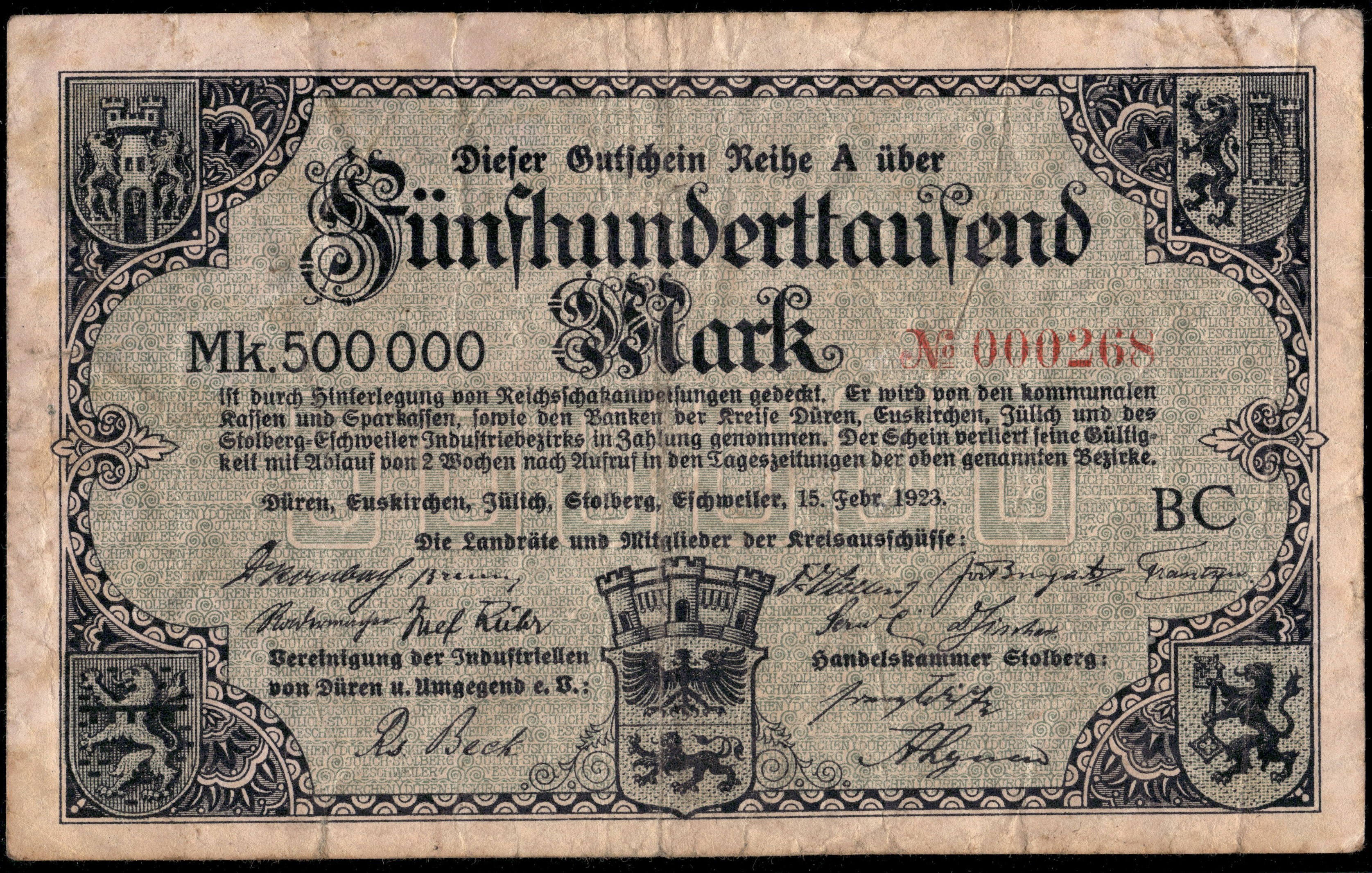Germany. Düren 500000 Marks 1923 Low S/N 268