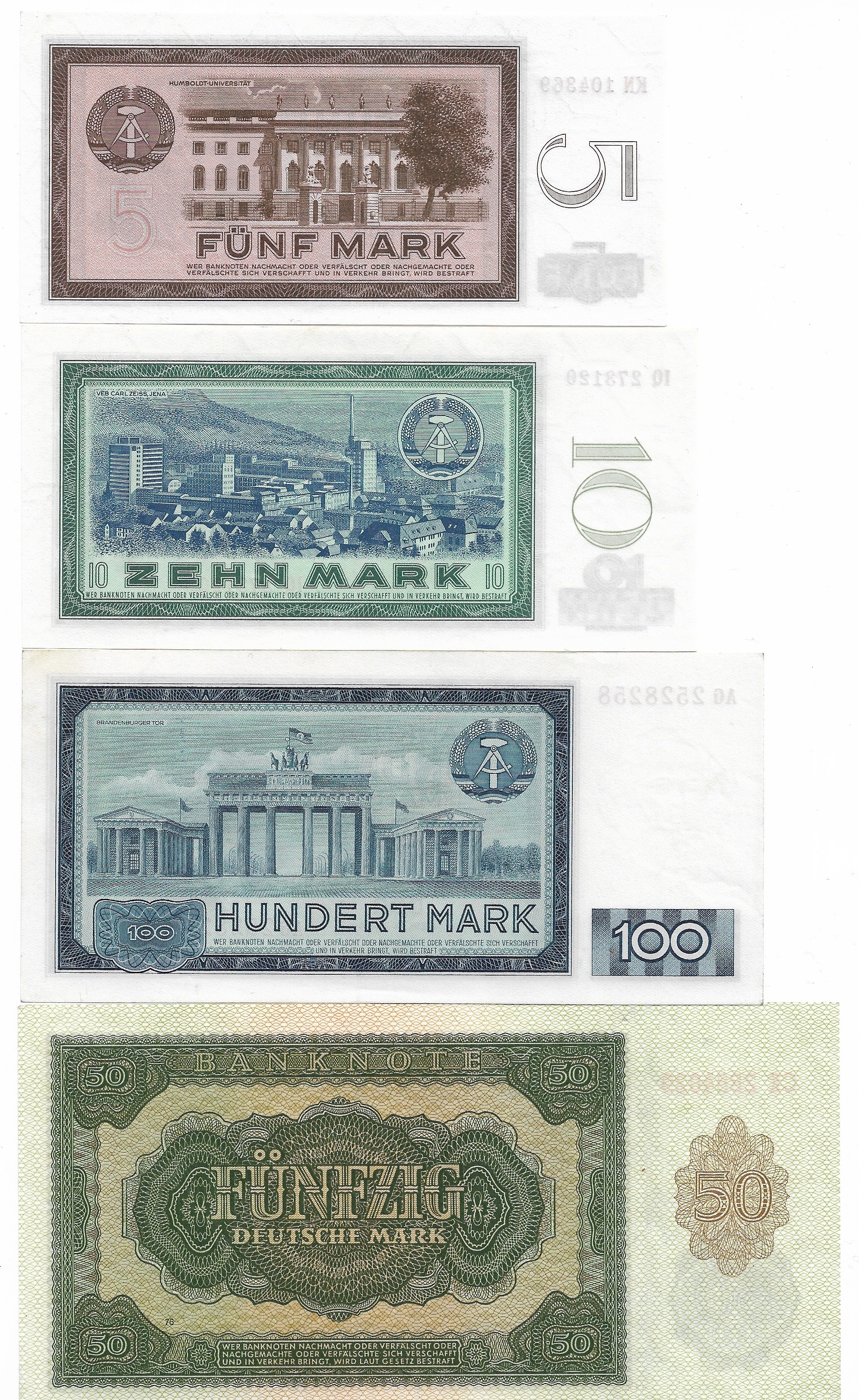 Zestaw banknotów w emisyjnych stanach zachowania, możliwe drobne niedoskonałości jak przytępione narożniki.