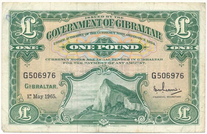 Gibraltár 1965. 1P T:F Gibraltar 1965. 1 Pound C:F Krause P#18.a