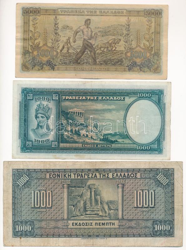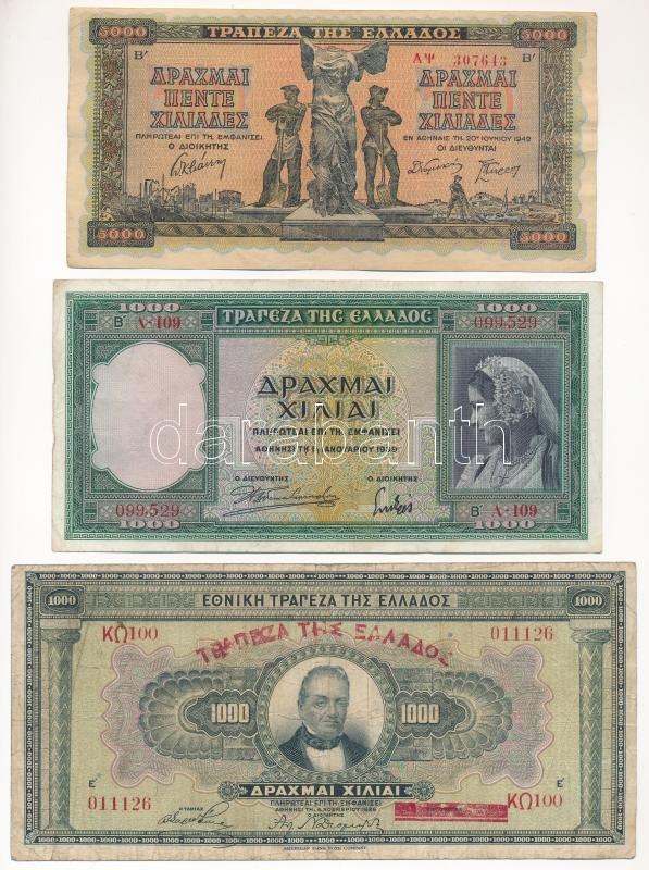 Görögország 1926. 1000Dr + 1939. 1000Dr + 1942. 5000Dr T:F,VG Greece 1926. 1000 Drachmai + 1939. 1000 Drachmai + 1942. 5000 Drachmai C:F,VG