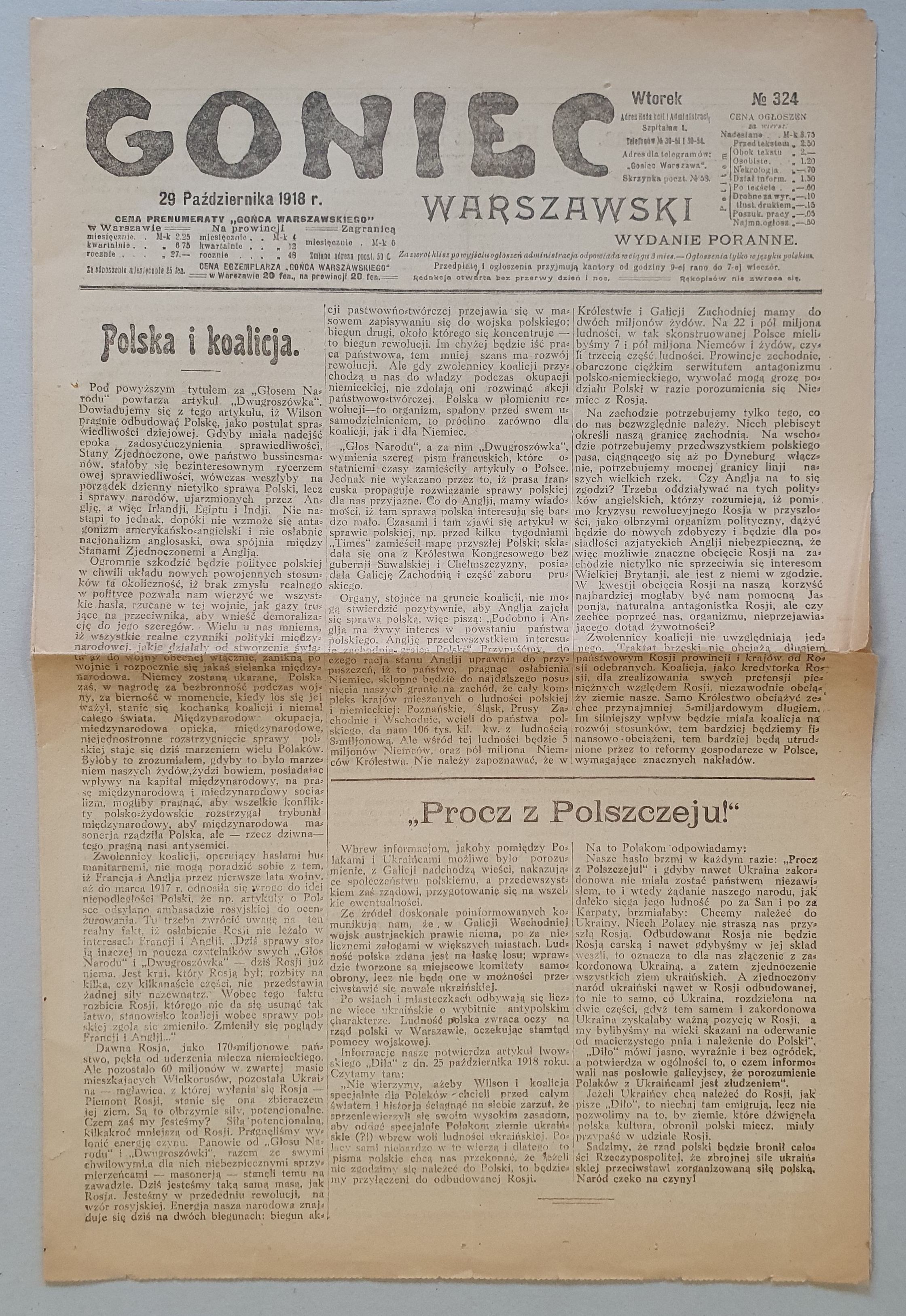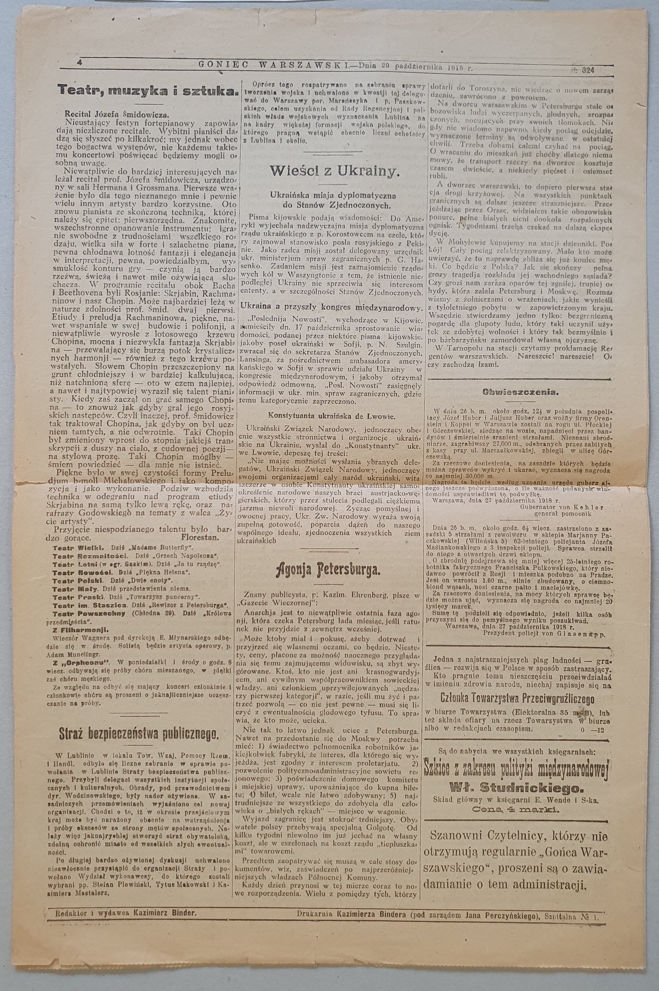 Goniec Warszawski. Wydanie poranne. R. 1918 nr 324 z 29 października.