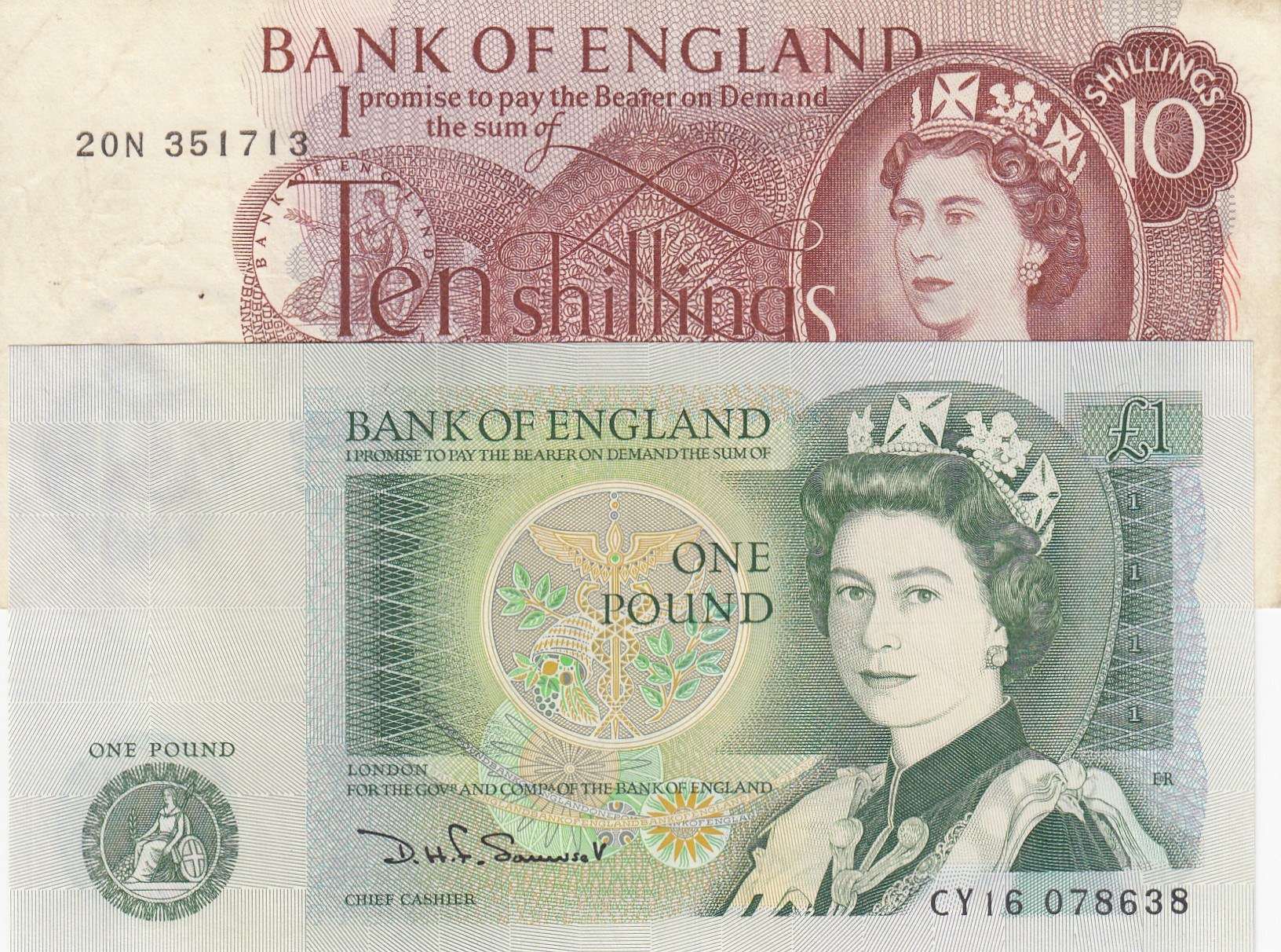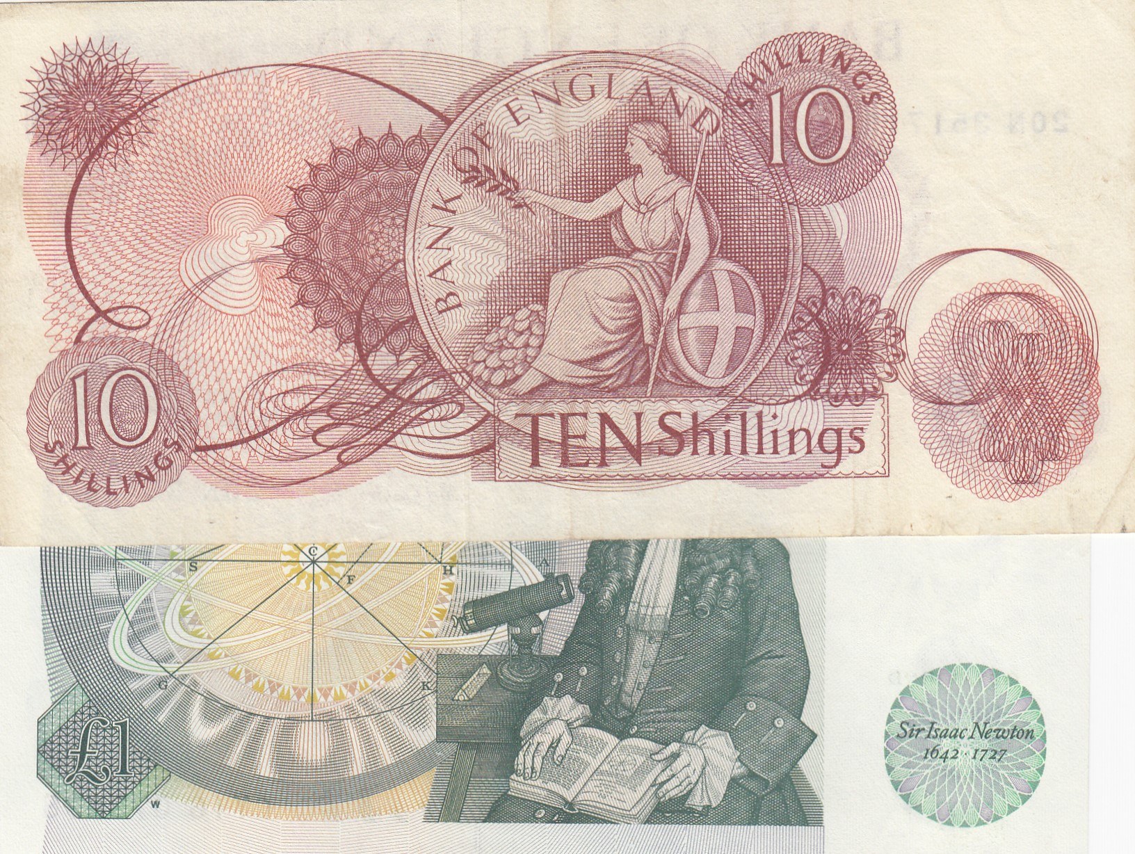 Great Britain, 10 Shillings and 1 Pound, 1963/1981, VF/UNC,p373, p377b, (Total 2 banknotes)