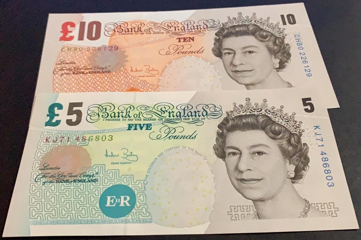 Great Britain, 5 Pounds and 10 Pounds, 2004, UNC, p391c, p389c, (Total 2 banknotes)