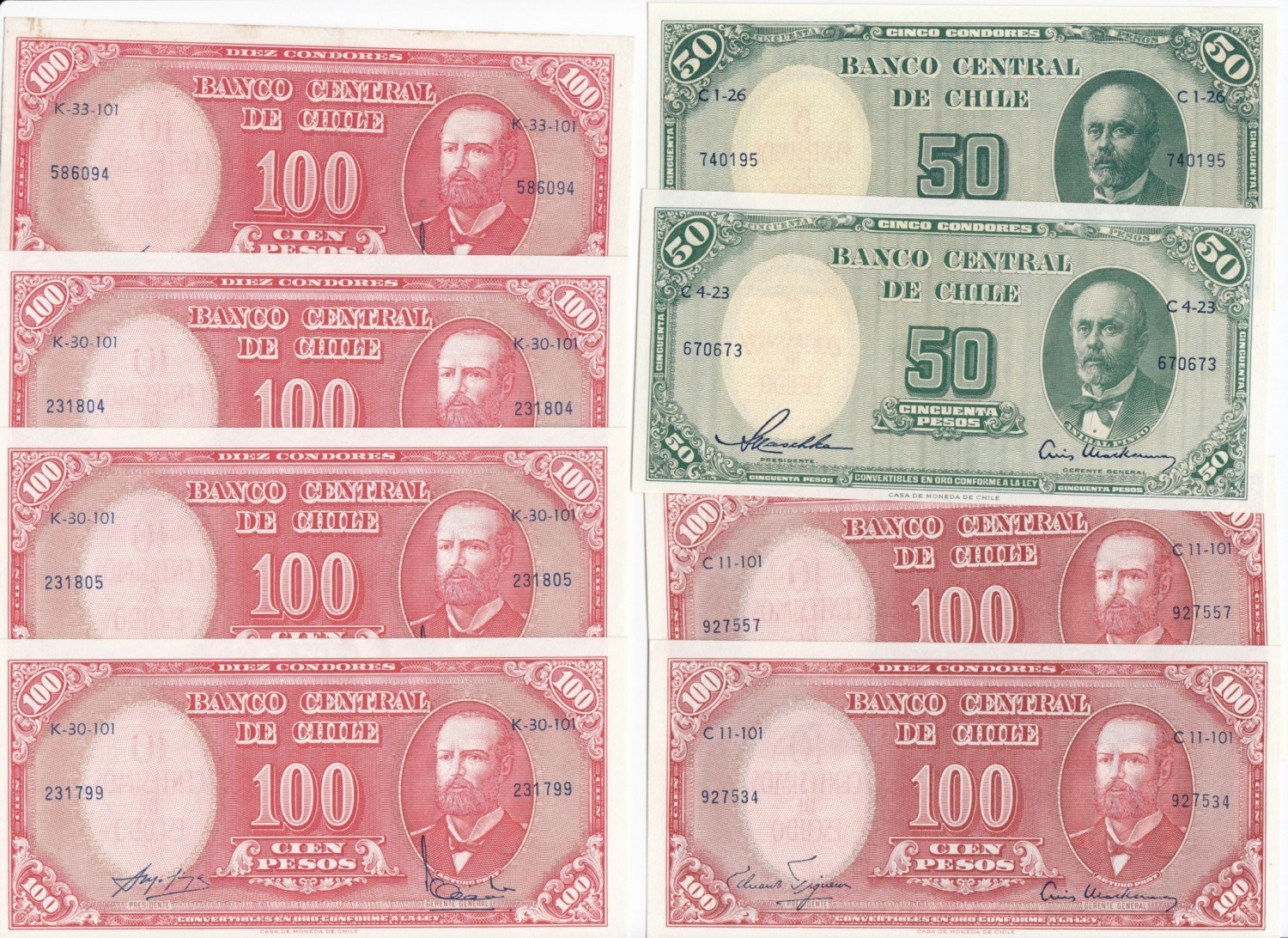 50 Pesos ND (1960-1961), UNC, Pick 126a(1), 126b(2).100 Pesos ND (1960-1961), XF-UNC, Pick 127a(1), 127a(3).