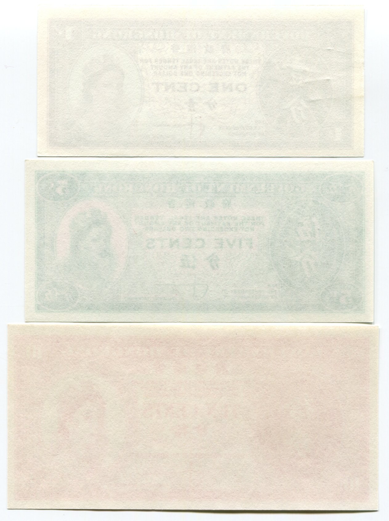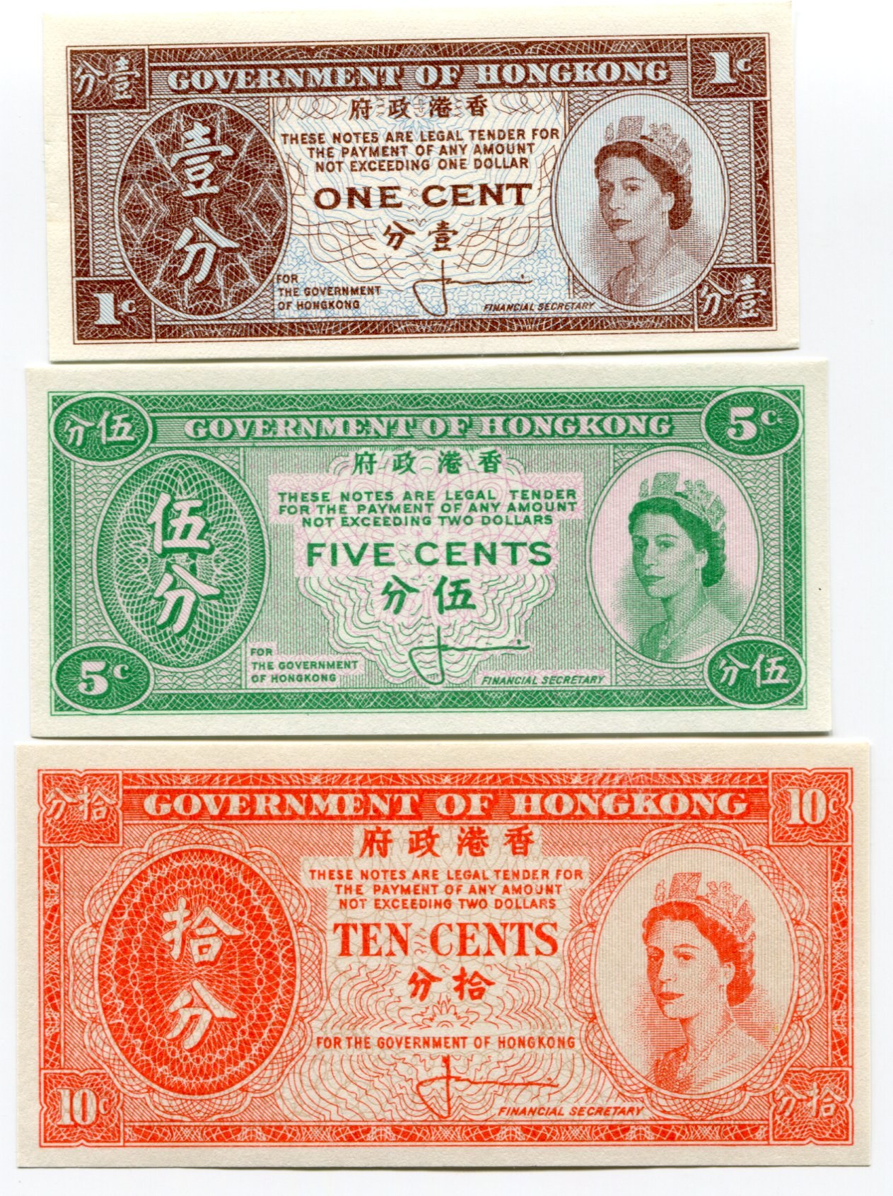 Hong Kong Set of 3 Notes: 1 - 5 - 10 Cents 1961 -71