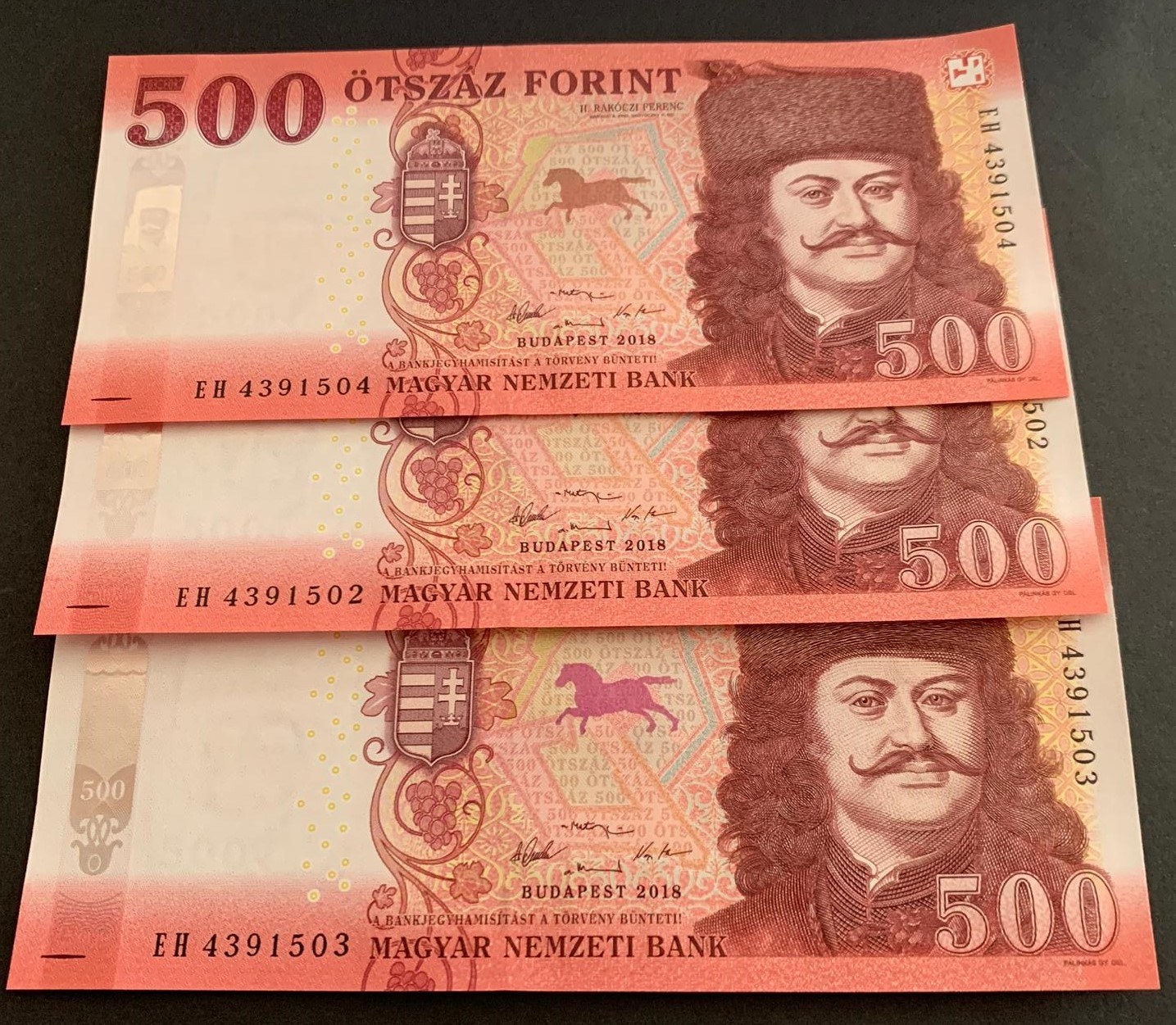 Hungary, 500 Forint, 2018, UNC, pNew, (Total 3 consecutive banknotes)