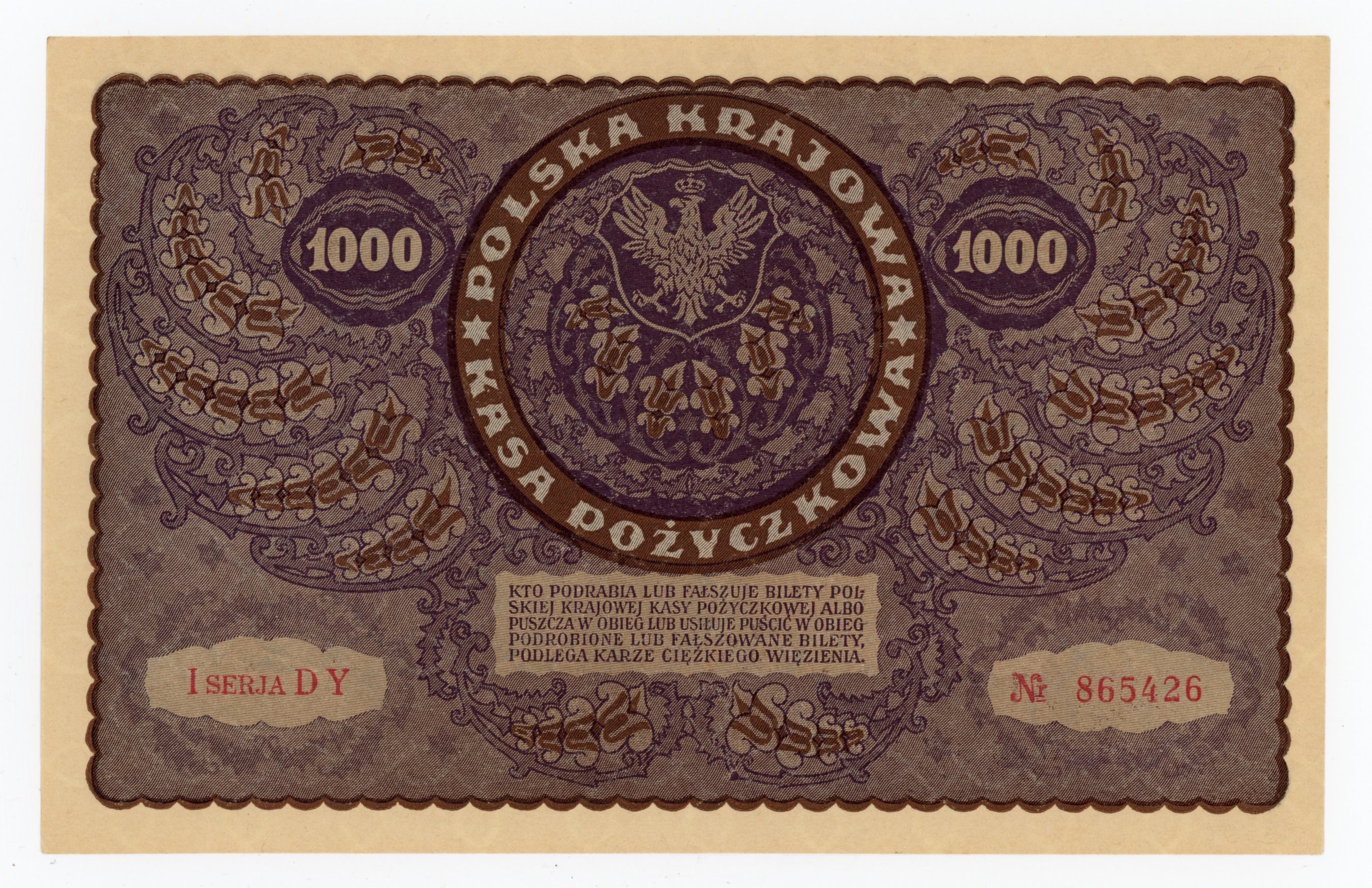 II RP, 1000 mkp 1919 I Serja DY. Stan zachowania 1/1-.