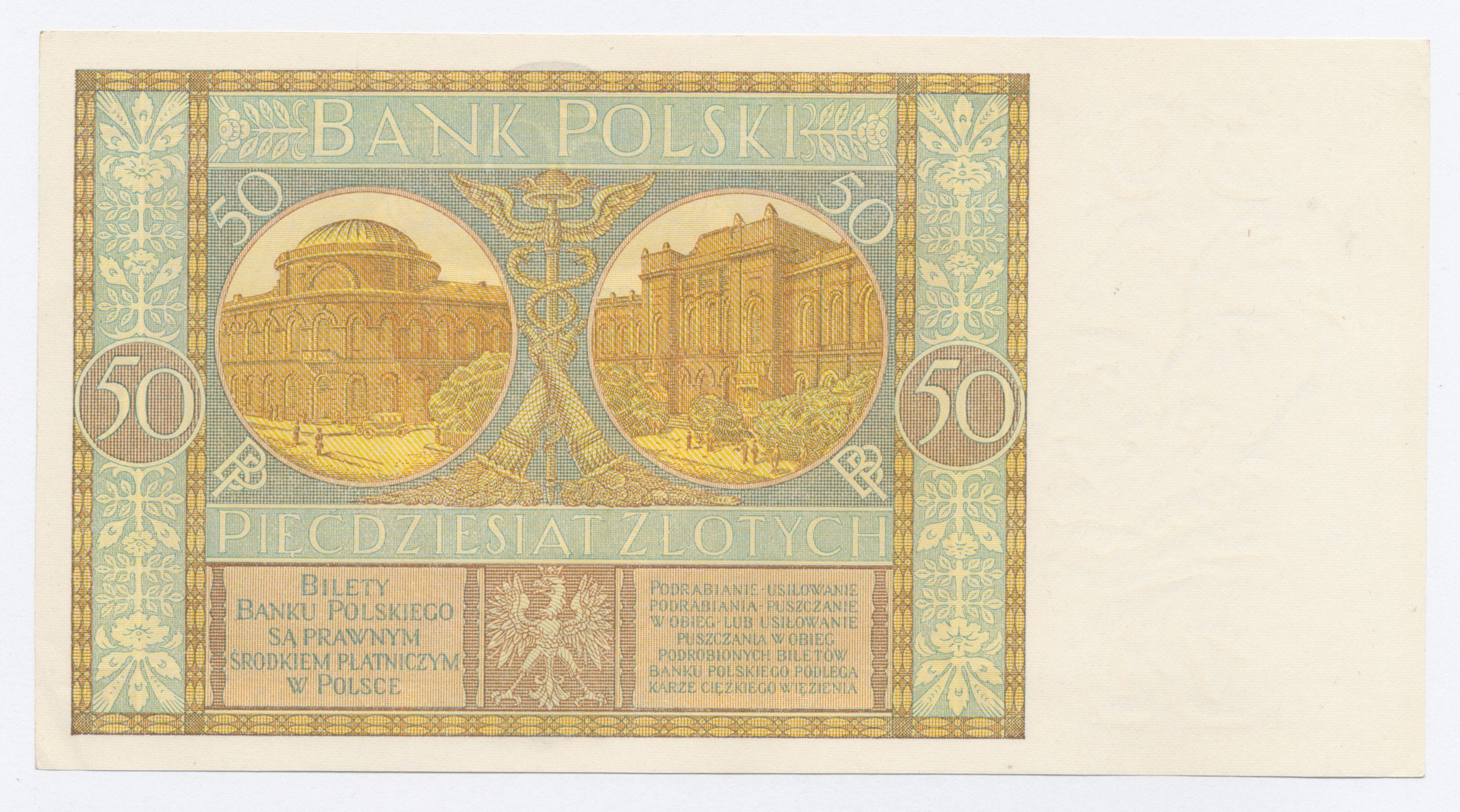 II RP, 50 złotych 1929 Ser. DŁ.. Stan zachowania 2+. Banknot raz ugięty w pionie. Literatura: Miłczak 70b