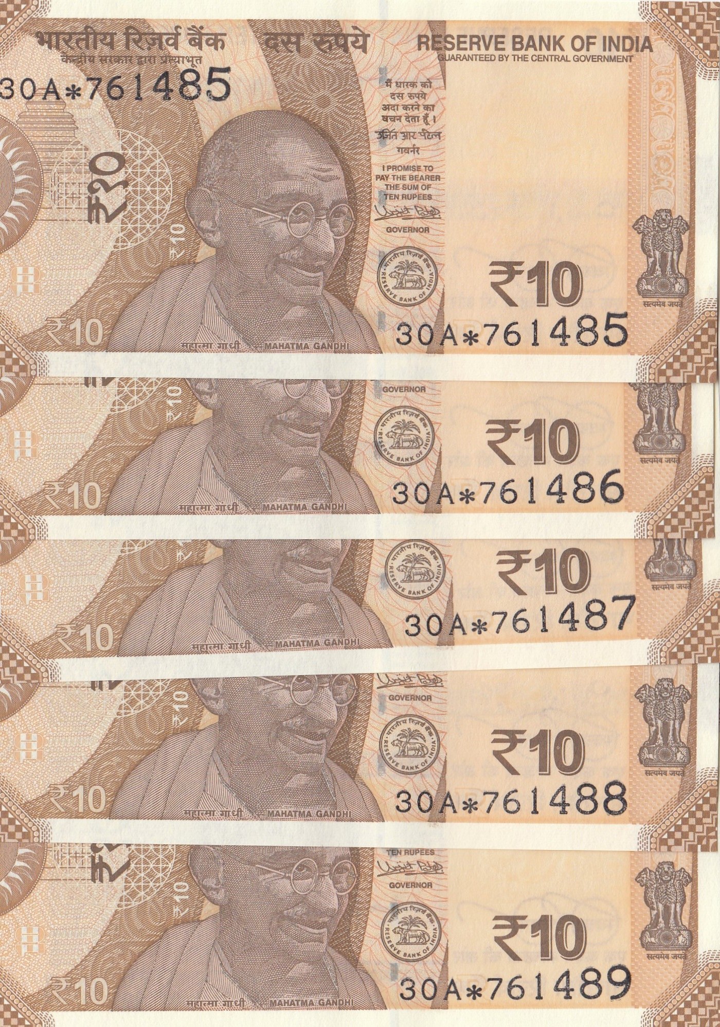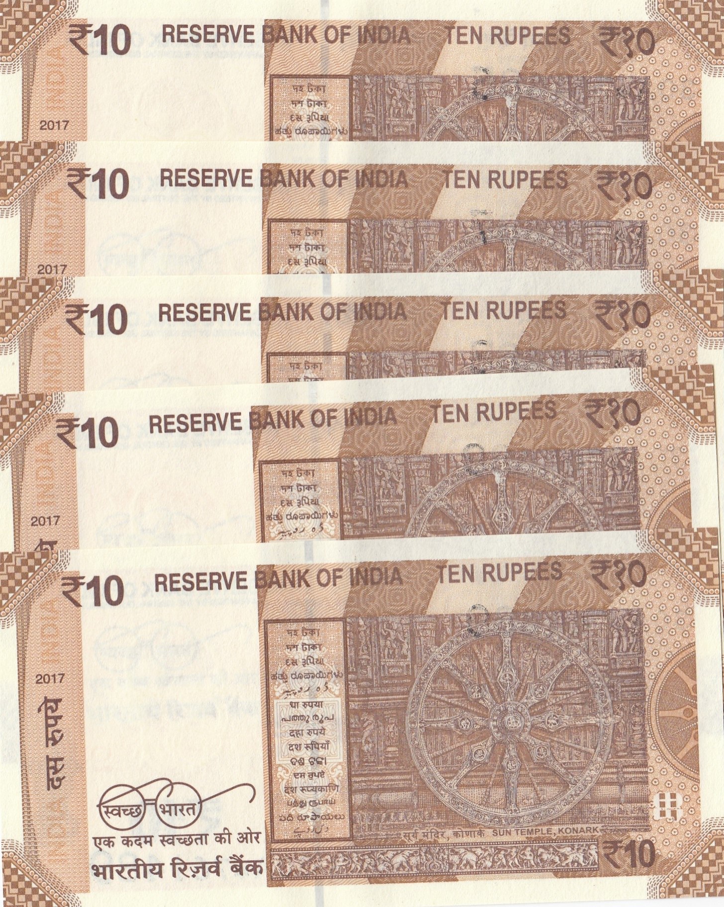 India, 10 Rupees, 2017, UNC, pNew, REPLACEMENT, (Total 5 consecutive banknotes)