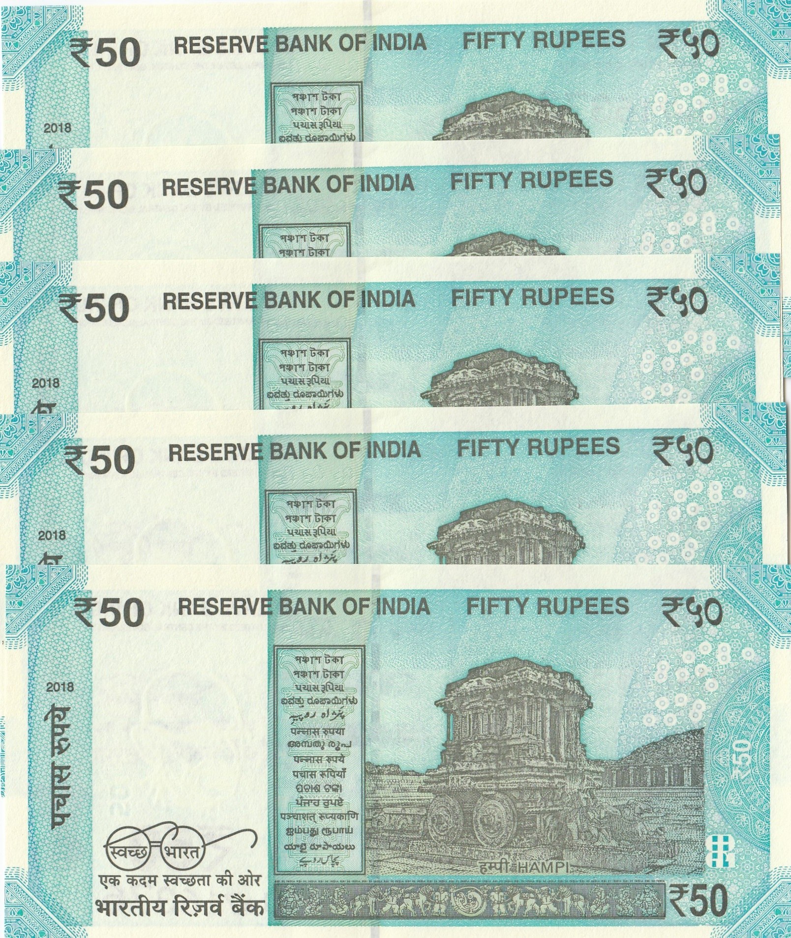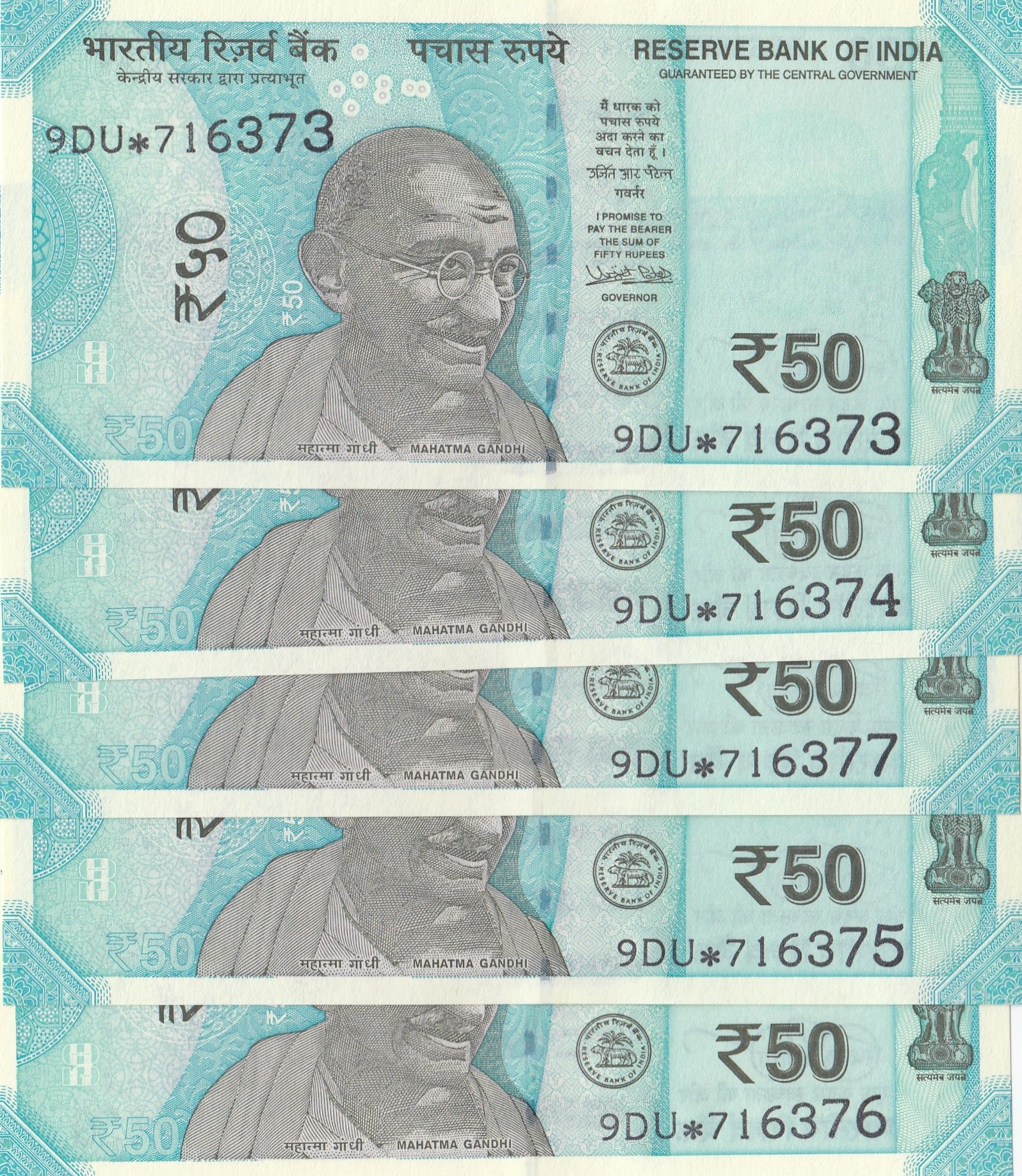India, 50 Rupees, 2017, UNC, pNew, REPLACEMENT, (Total 5 consecutive banknotes)