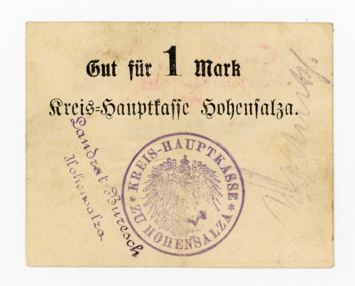 Inowrocław/Hohensalza, 1 marka 1914. Stan zachowania 3+. Złamane na krzyż ale poziome złamanie słabe. Literatura: Podczaski P-045/A/4b