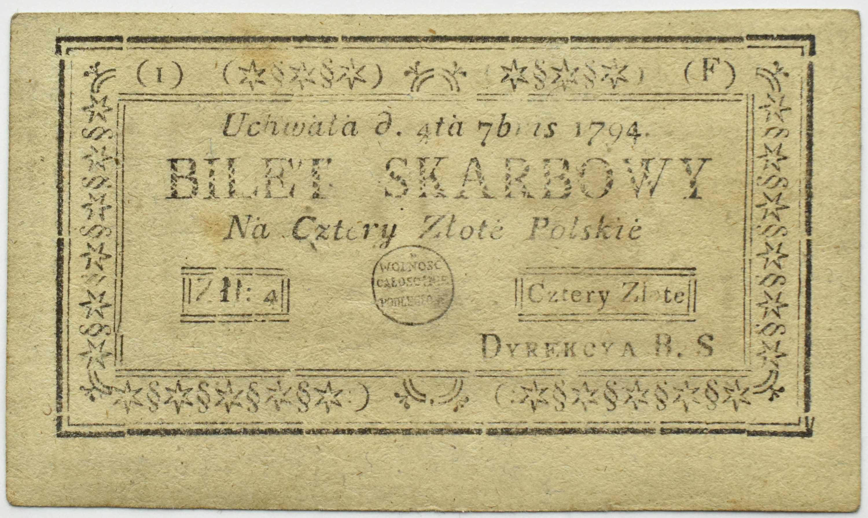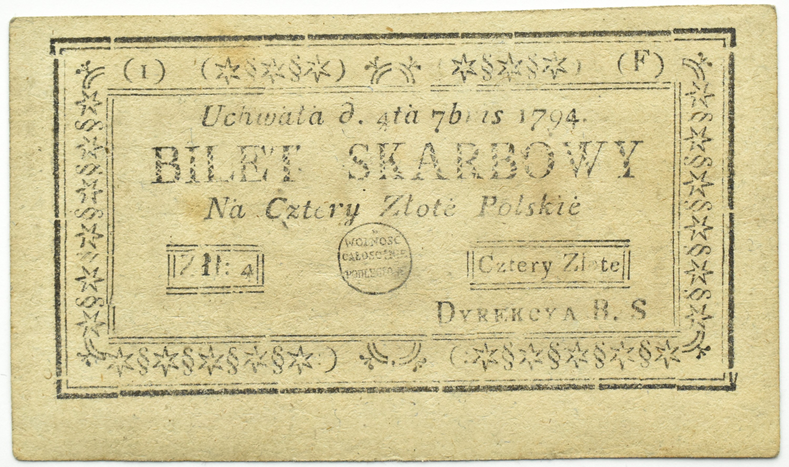 Polska, Insurekcja Kościuszkowska, 4 złote 1794, I seria F