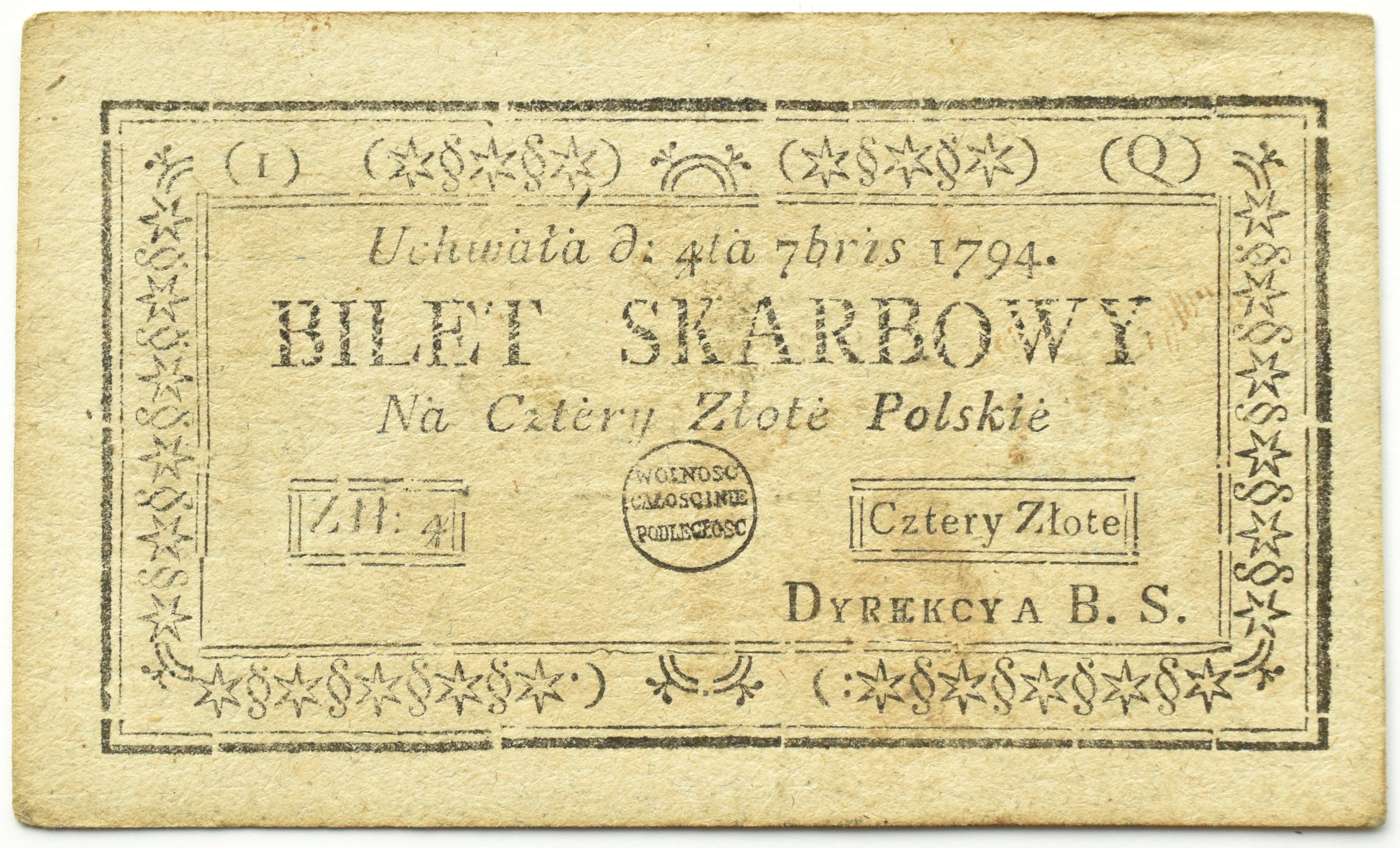 Polska, Insurekcja Kościuszkowska, 4 złote 1794, 1 seria Q
