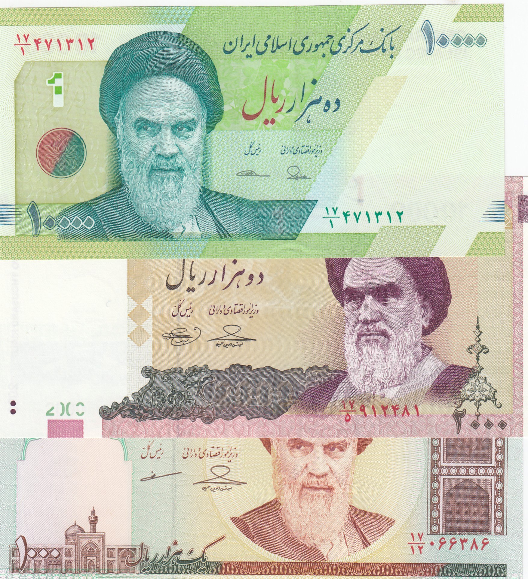 Iran, 1.000 Rials, 2.000 Rials and 10.000 Rials, UNC, (Total 3 banknotes)