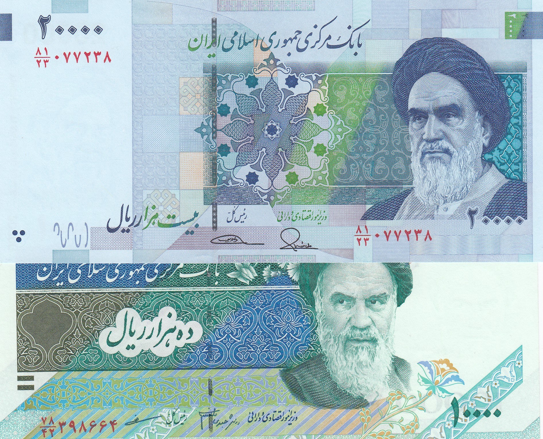Iran, 10.000 Rials ve 20.000 Rials, 1992/2004, UNC, p146, p147, (Total 2 banknotes)
