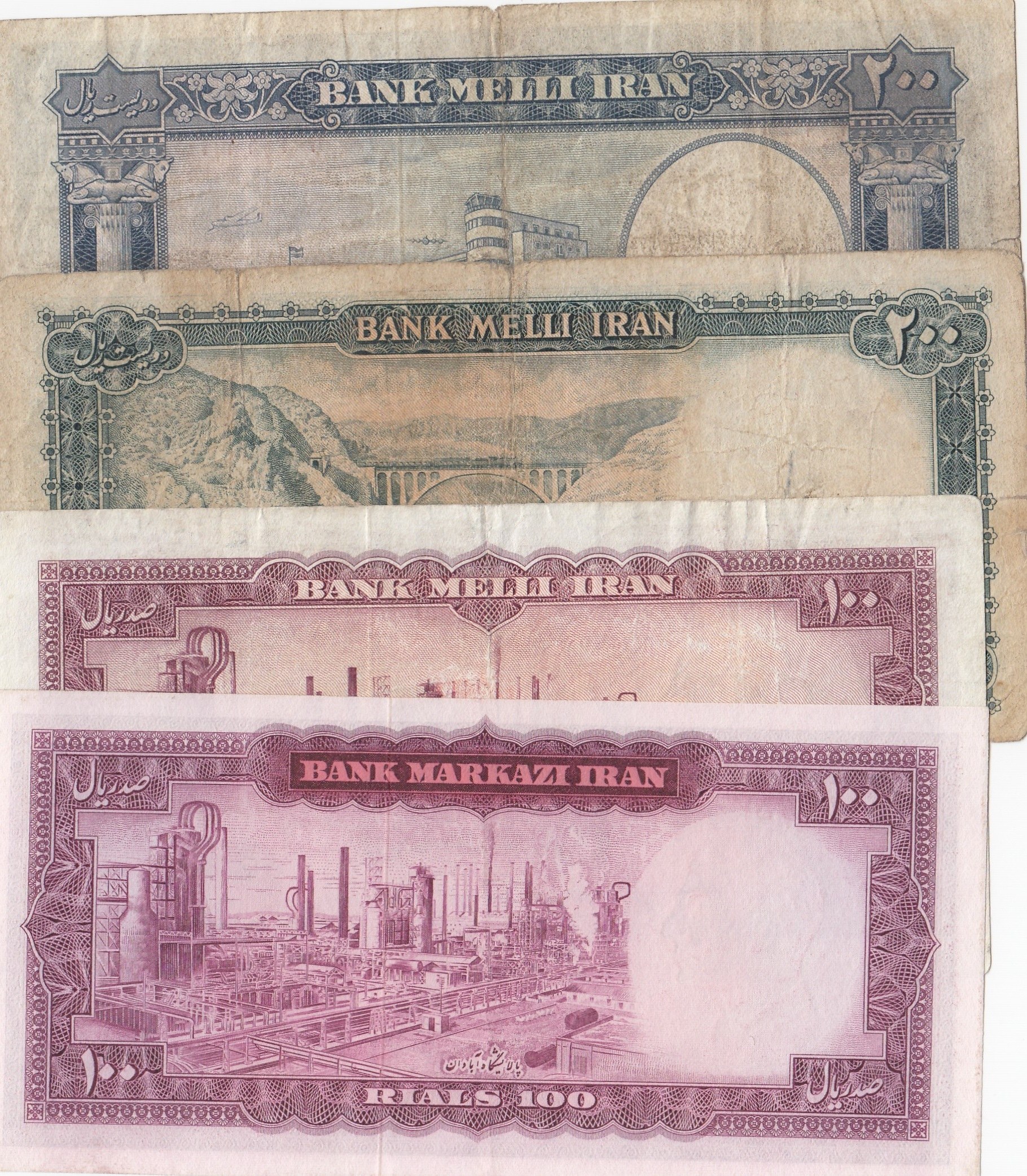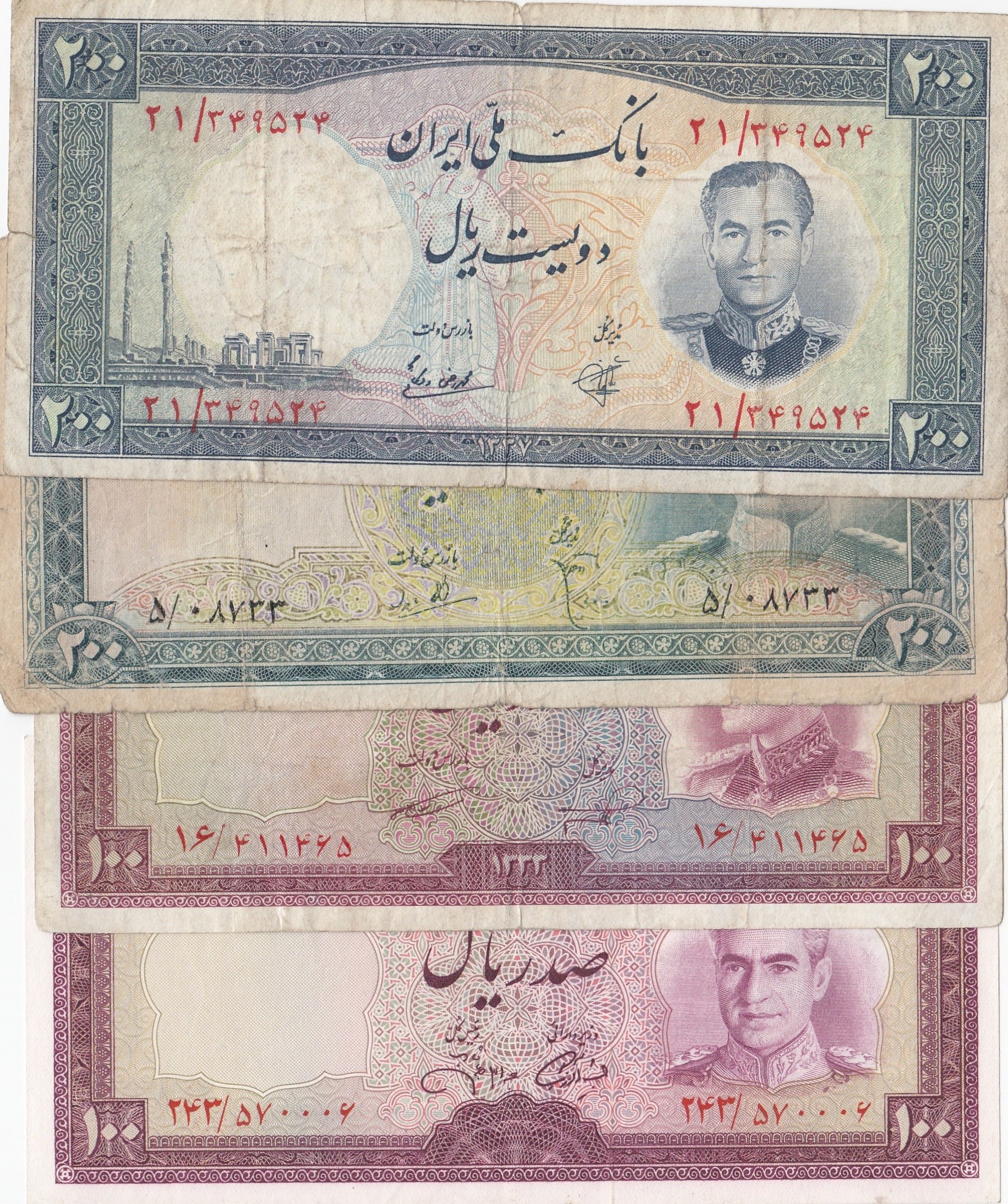 Iran, 100 Rial (2) and 200 Rial (2), 1951/1973, FINE / UNC, (Total 4 banknotes)
