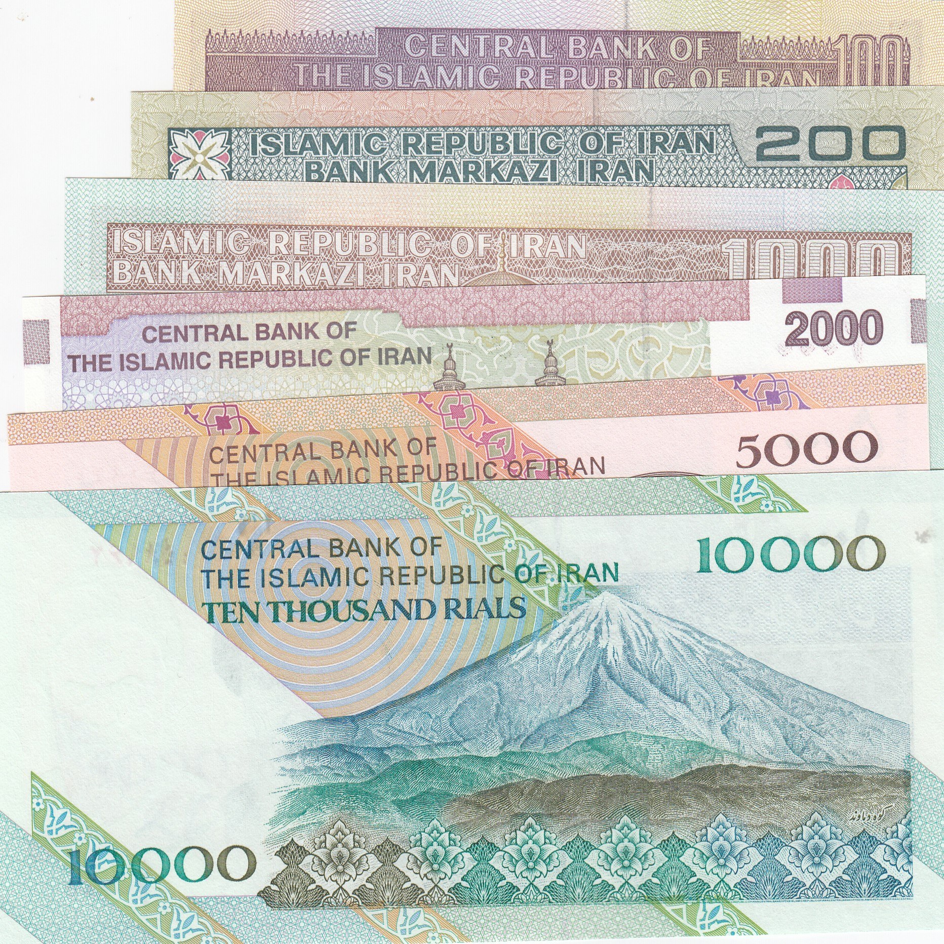 Iran, 100 Rials, 200 Rials, 1.000 Rials, 2.000 Rials, 5.000 Rials and 10.000 Rials, 1985/1992, UNC, p140 … p146, (Total 6 banknotes)