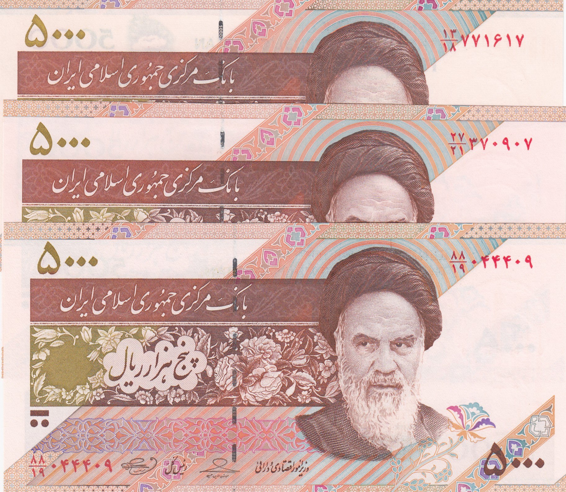 Iran, 5.000 Rials, 2009, UNC, p150, (Total 3 banknotes)