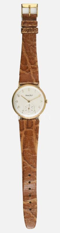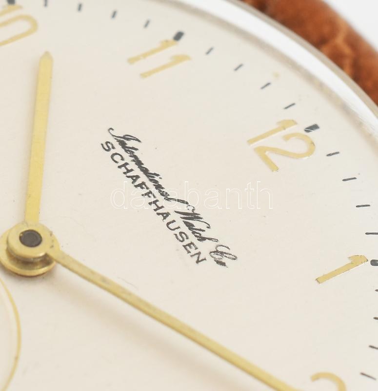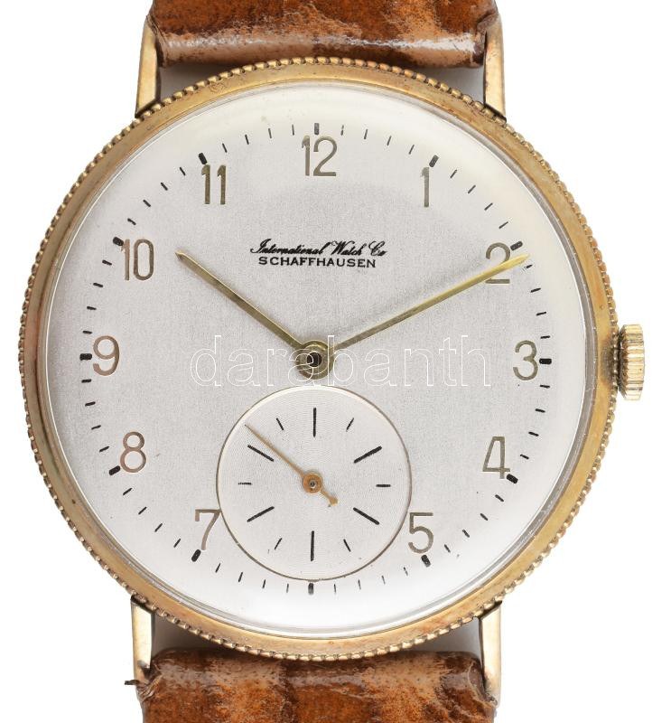 IWC 14K arany kézi felhúzós férfi karóra. Jelzett, hibátlan számlappal, bőr szíjjal 33 mm