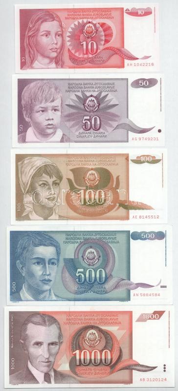 Jugoszlávia 1985-1990. 10D - 100.000D (9xklf) T:UNC-AU Yugoslavia 1985-1990. 10 Dinara - 100.000 Dinara (9xdiff) C:UNC-AU