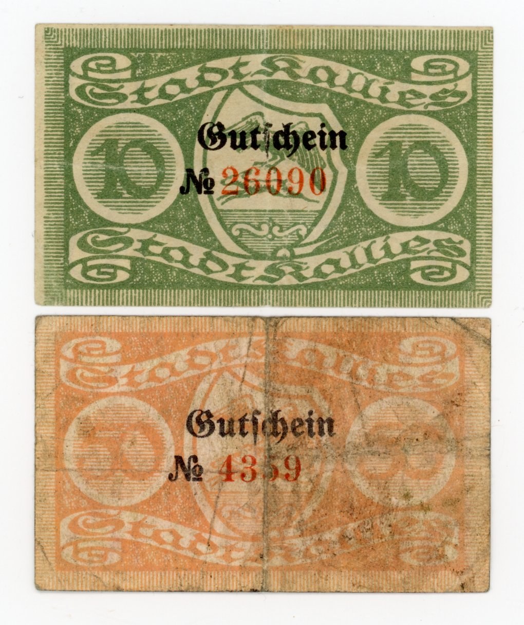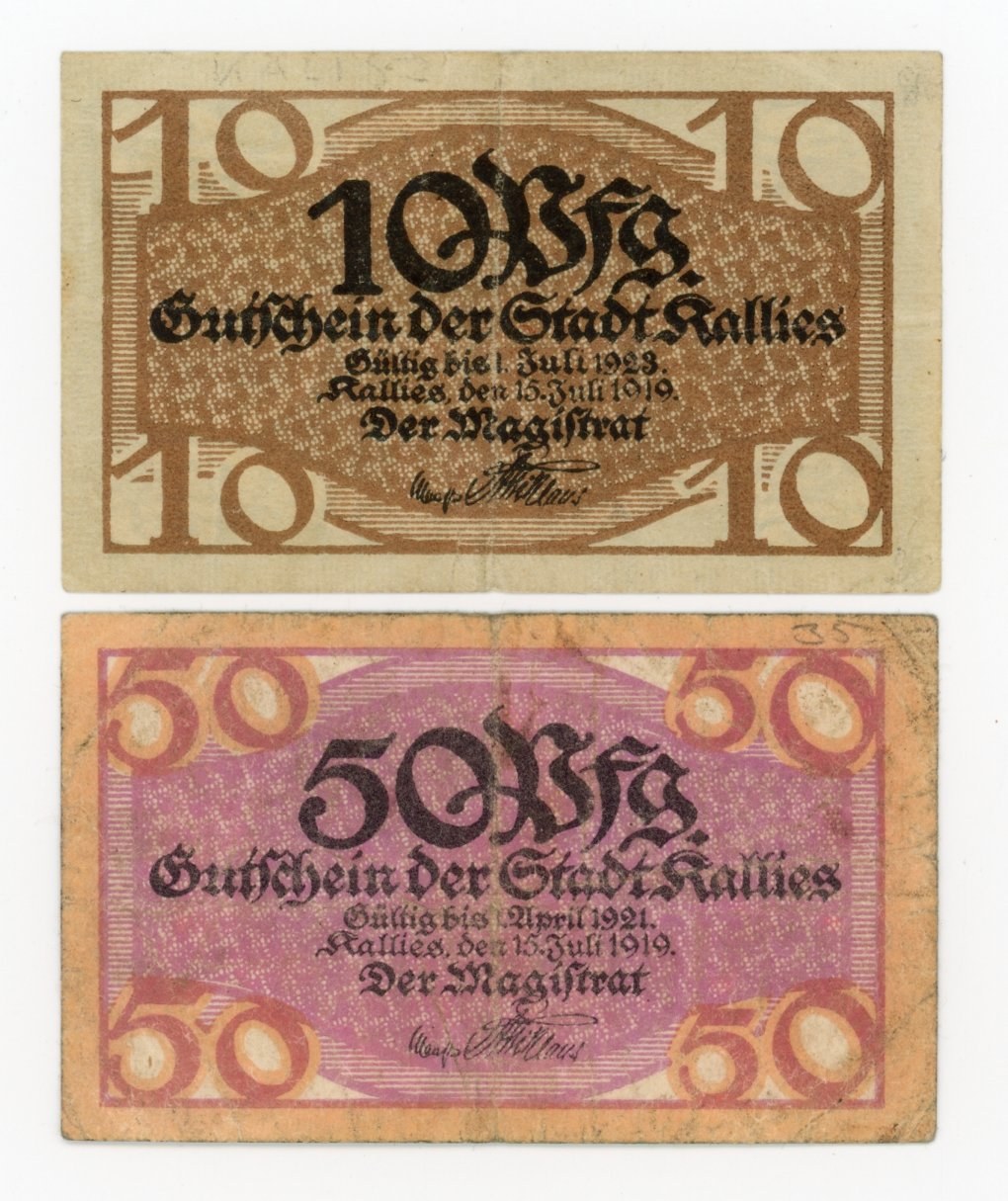 Kalisz Pomorski/Kallies, 10 fenigów 1918 i 50 fenigów 1919. Stan zachowania 3.