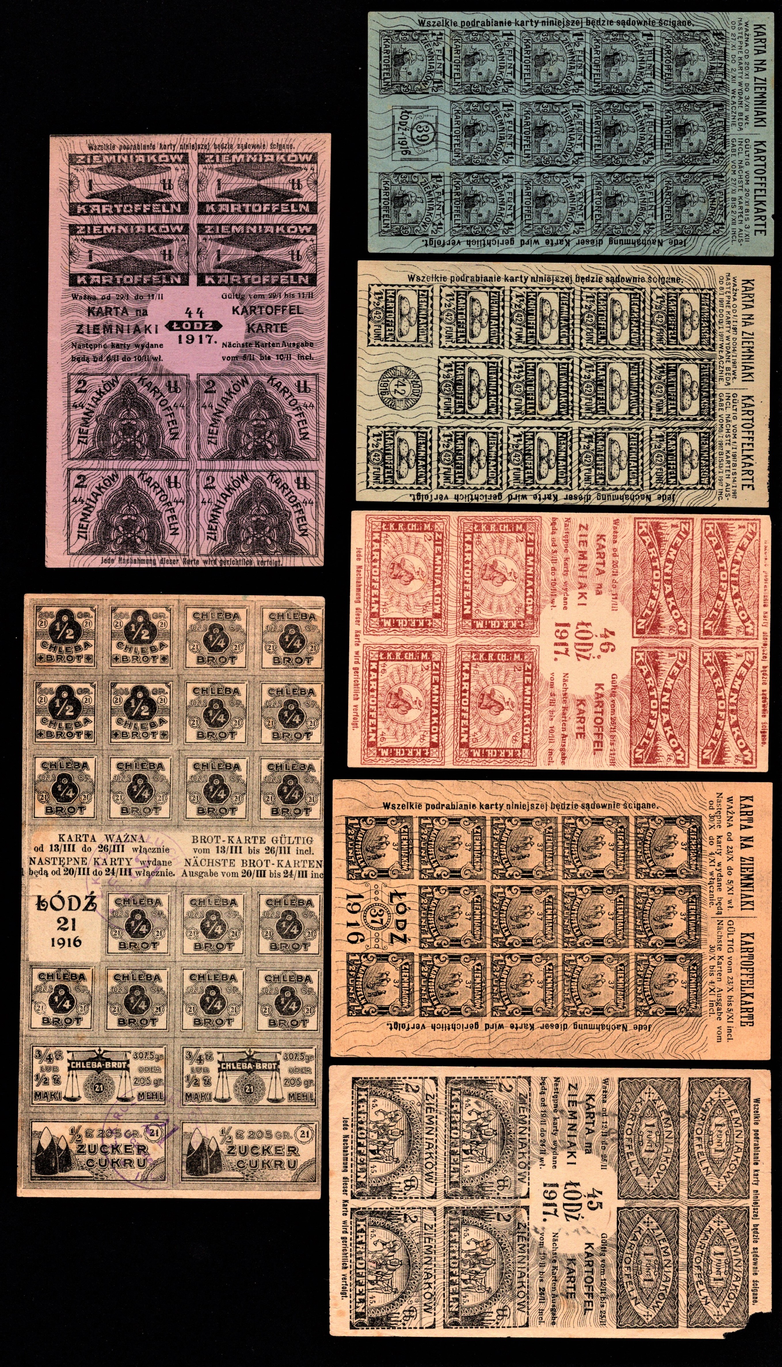 Kartki na ziemniaki i cukier - Łódź 1916 i 1917 - 7 sztuk
