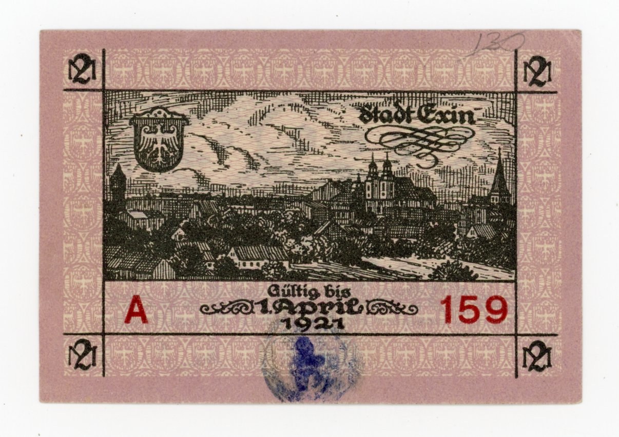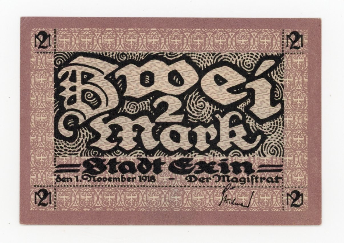 Kcynia/Exin, 2 marki 1918 - rzadka odmiana ze stemplem. Stan zachowania 1/1-.