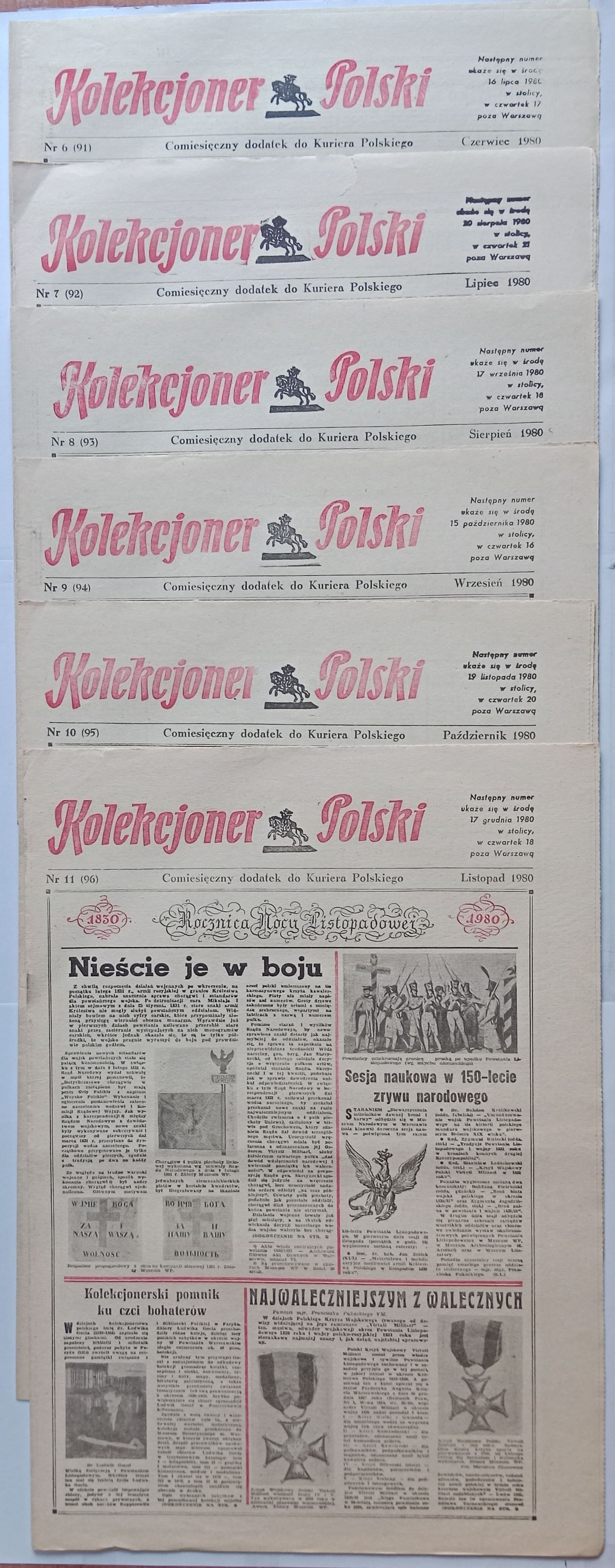 KOLEKCJONER POLSKI ZESTAW 6 SZT NUMERY: CZERWIEC-LISTOPAD 1980 R