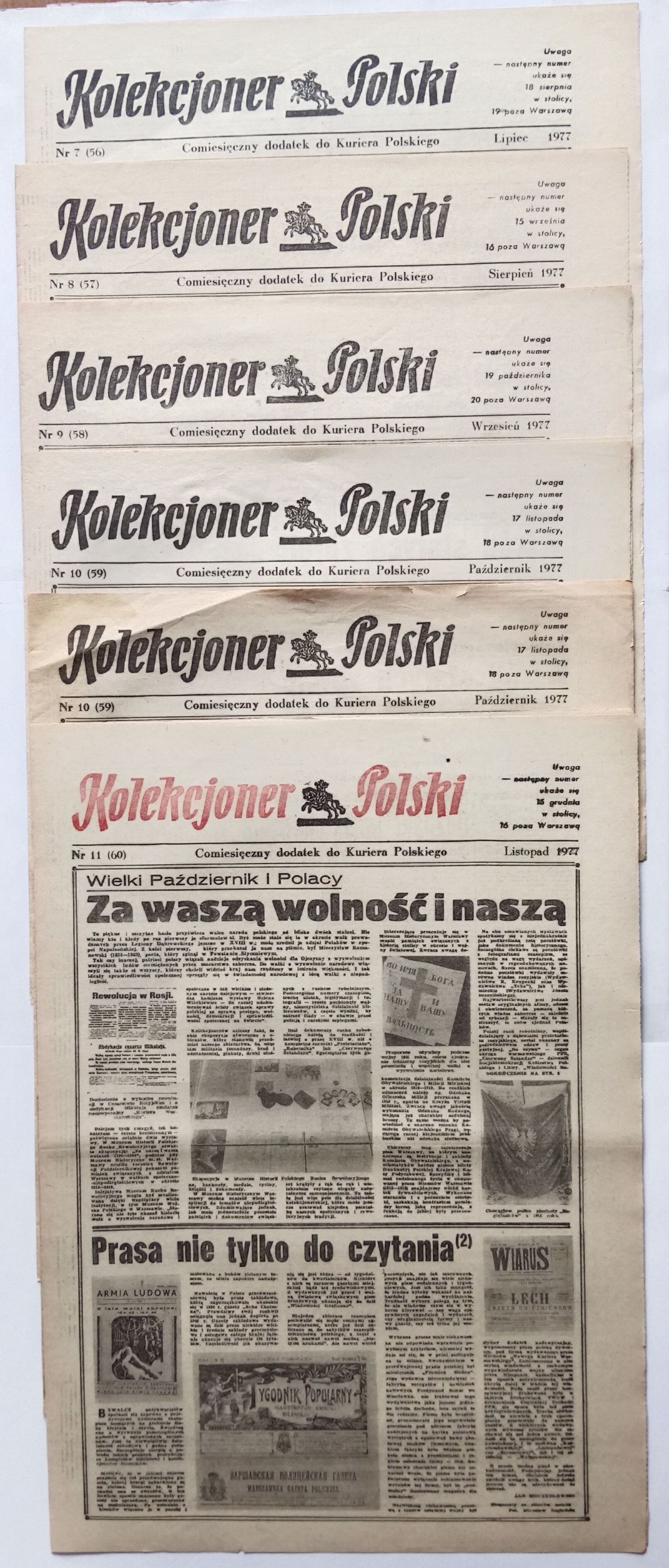 KOLEKCJONER POLSKI ZESTAW 6 SZT NUMERY: LIPIEC-LISTOPAD 1977 R (PAŹDZIERNIK 1977 R x2)