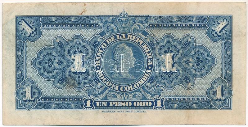 Kolumbia 1954. 1P T:F folt, erős papír Colombia 1954. 1 Peso Oro C:F spot, sturdy paper Krause P#380g