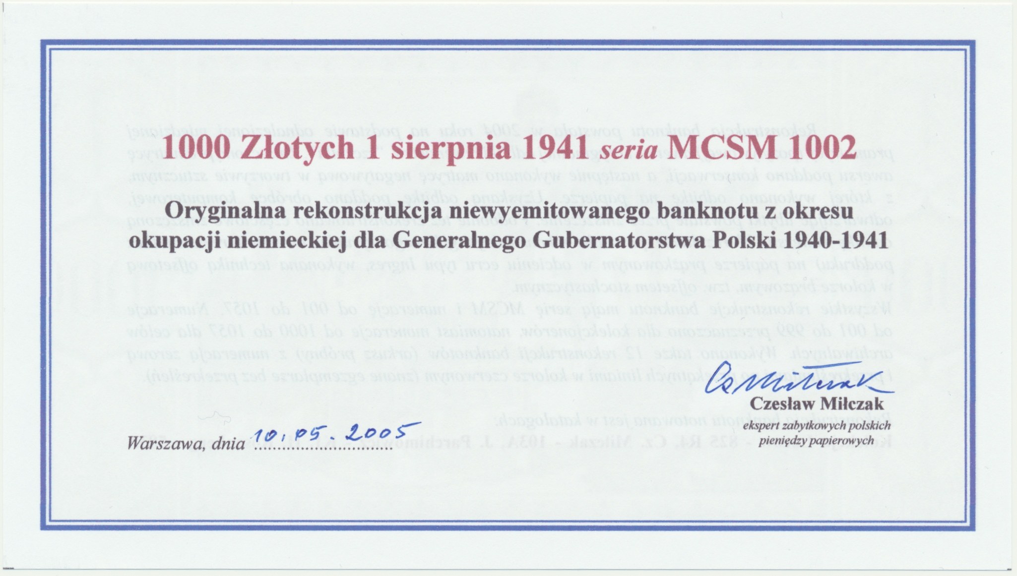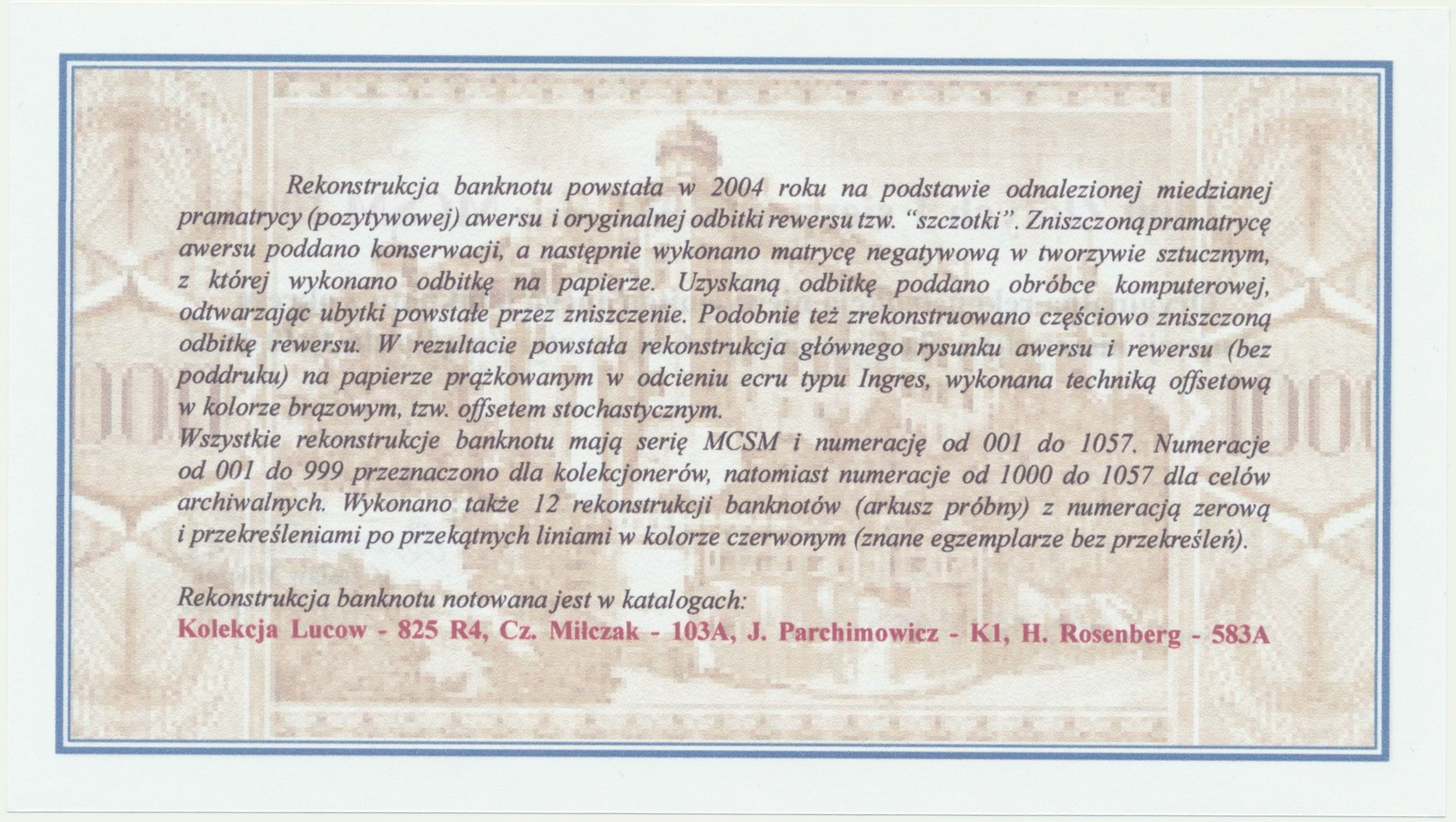 Oryginalna rekonstrukcja na papierze ze znakiem wodnym.