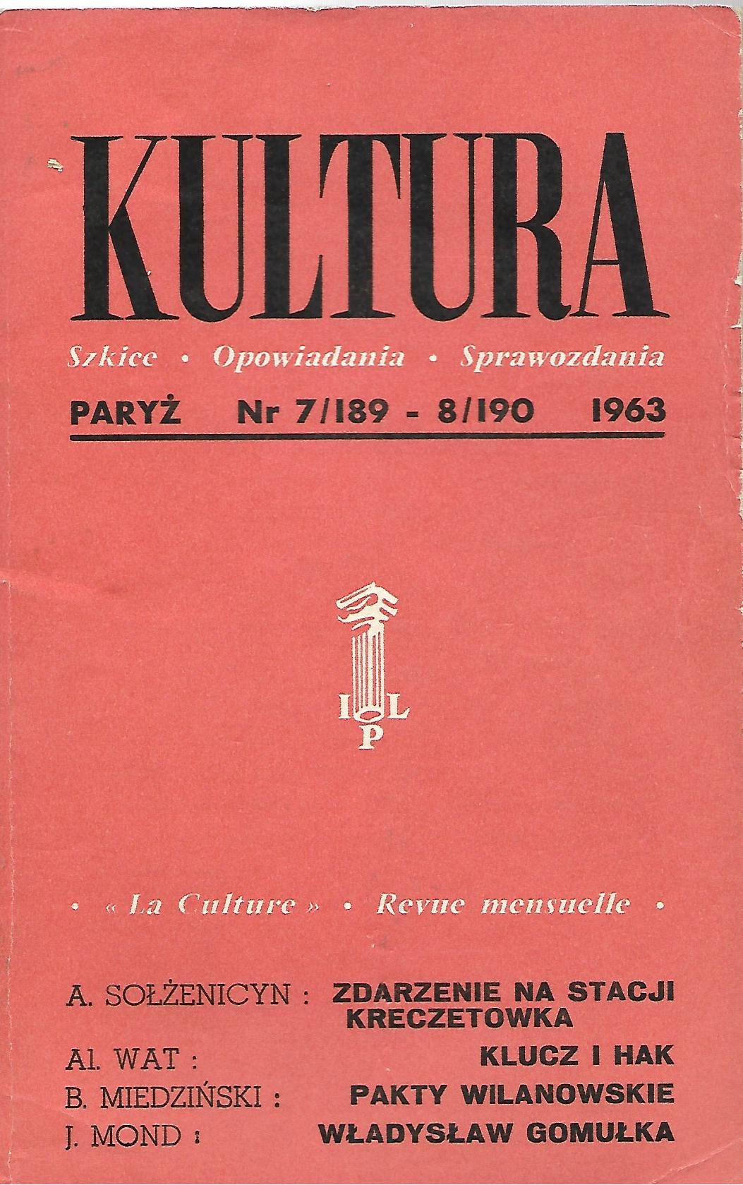 Instytut Literacki, Paryż 1963. Format 21,5x13,5cm; stron 240.Oprawa:broszura.Nieliczne przybrudzenia, niewielkie naddarcie na grzbiecie – stan dobry.