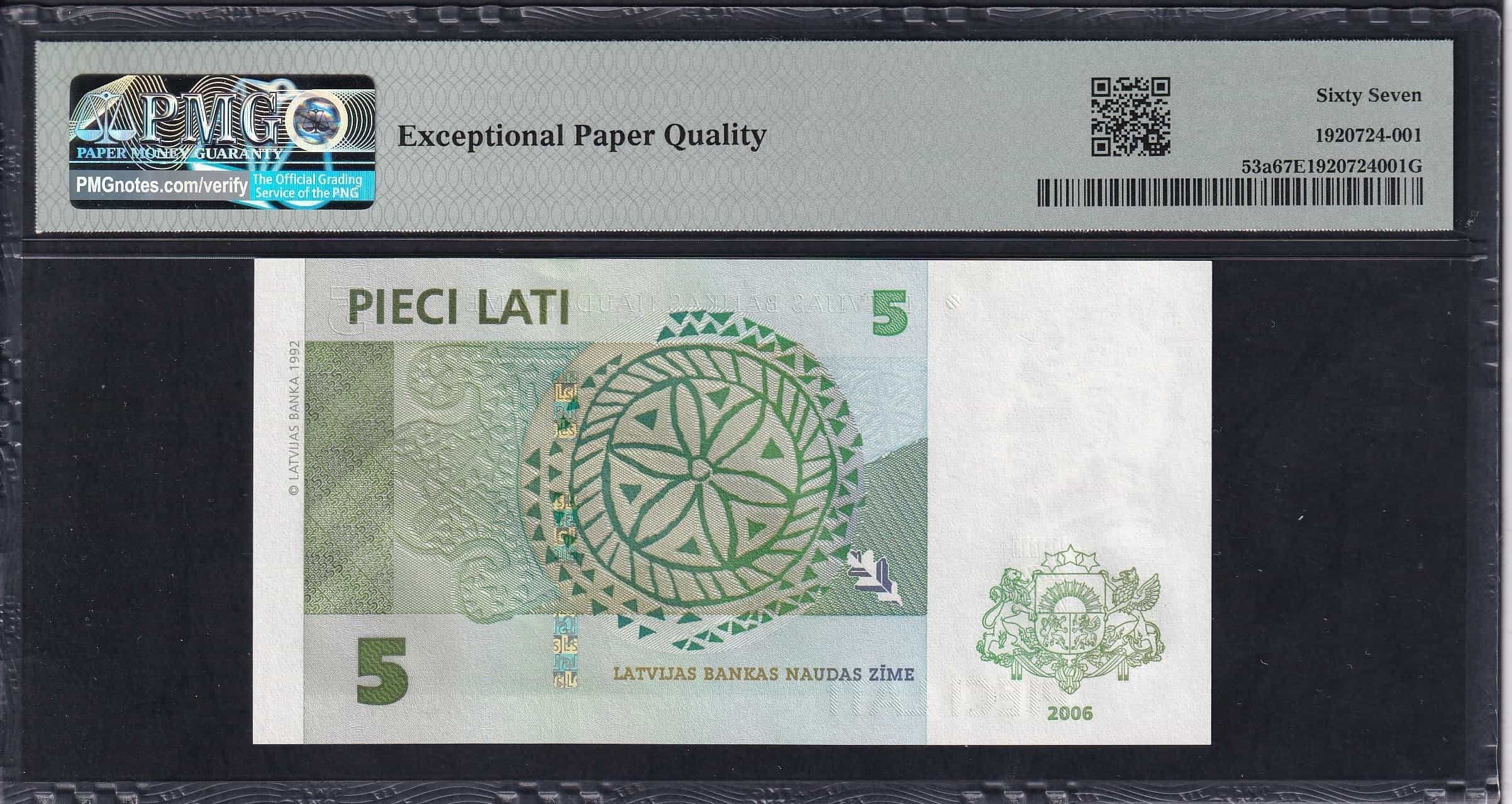 Latvia, Latvijas Banka, 5 Lati, 2006, Superb Gem UNC 67 EPQ, Pick: 53a