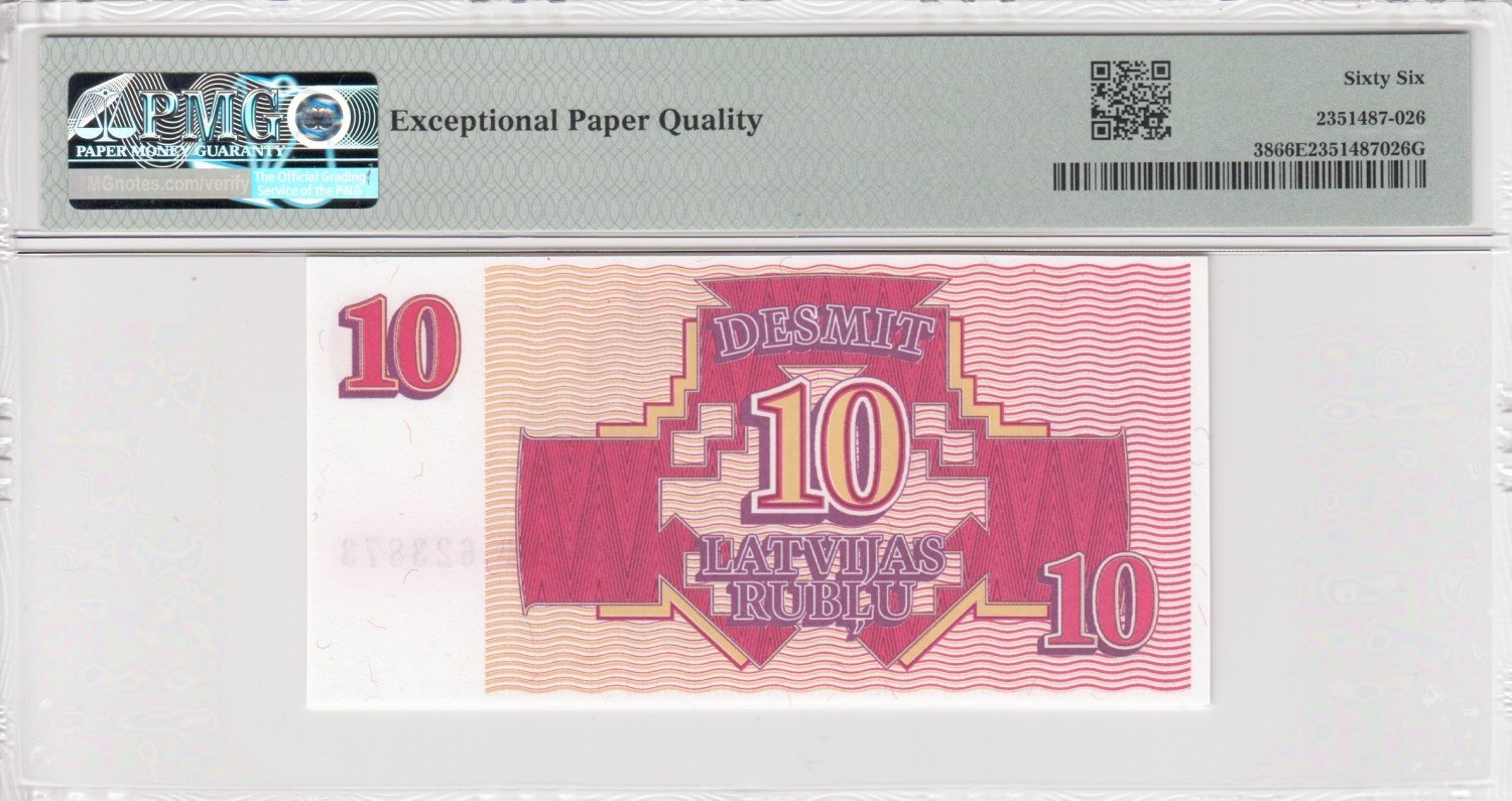 Latvia (Latvijas Banka) 10 Rublu 1992 - PMG 66 EPQ Gem Uncirculated