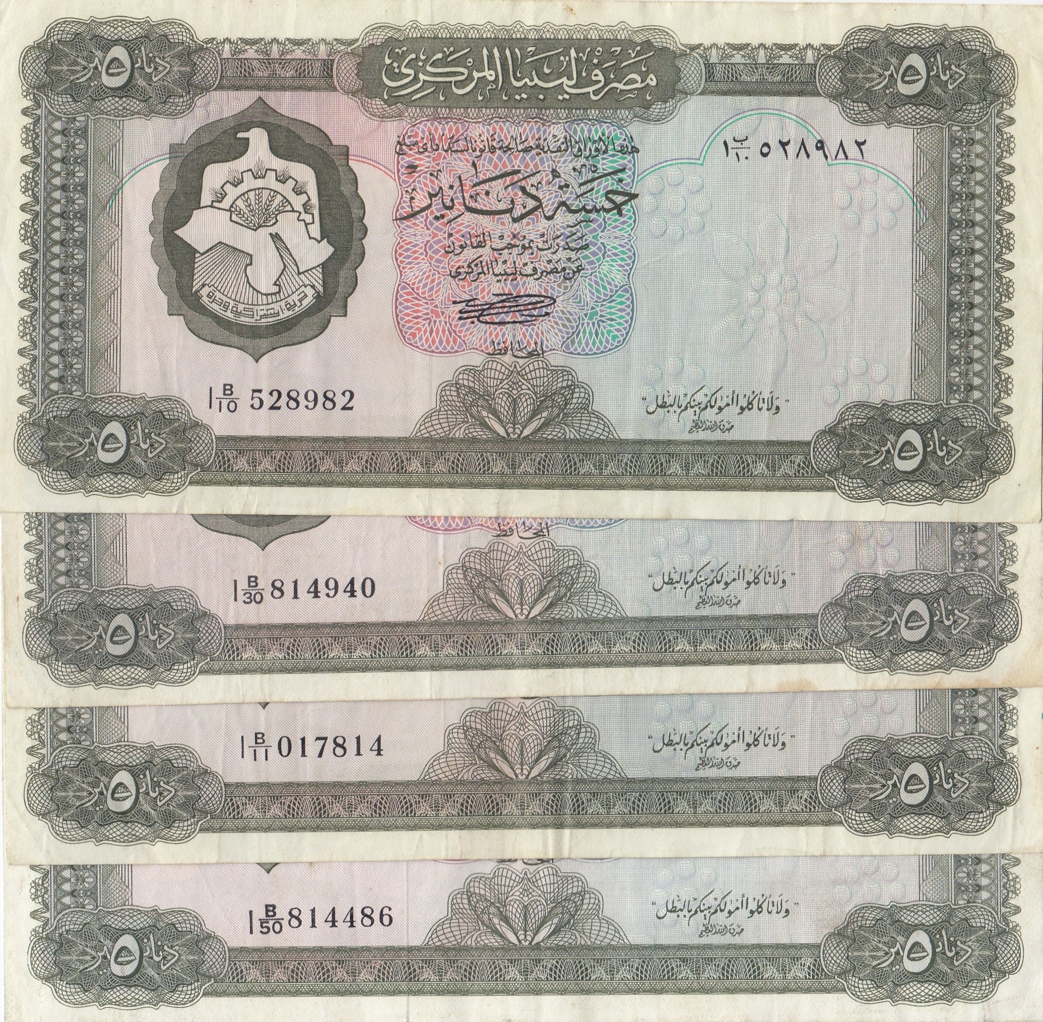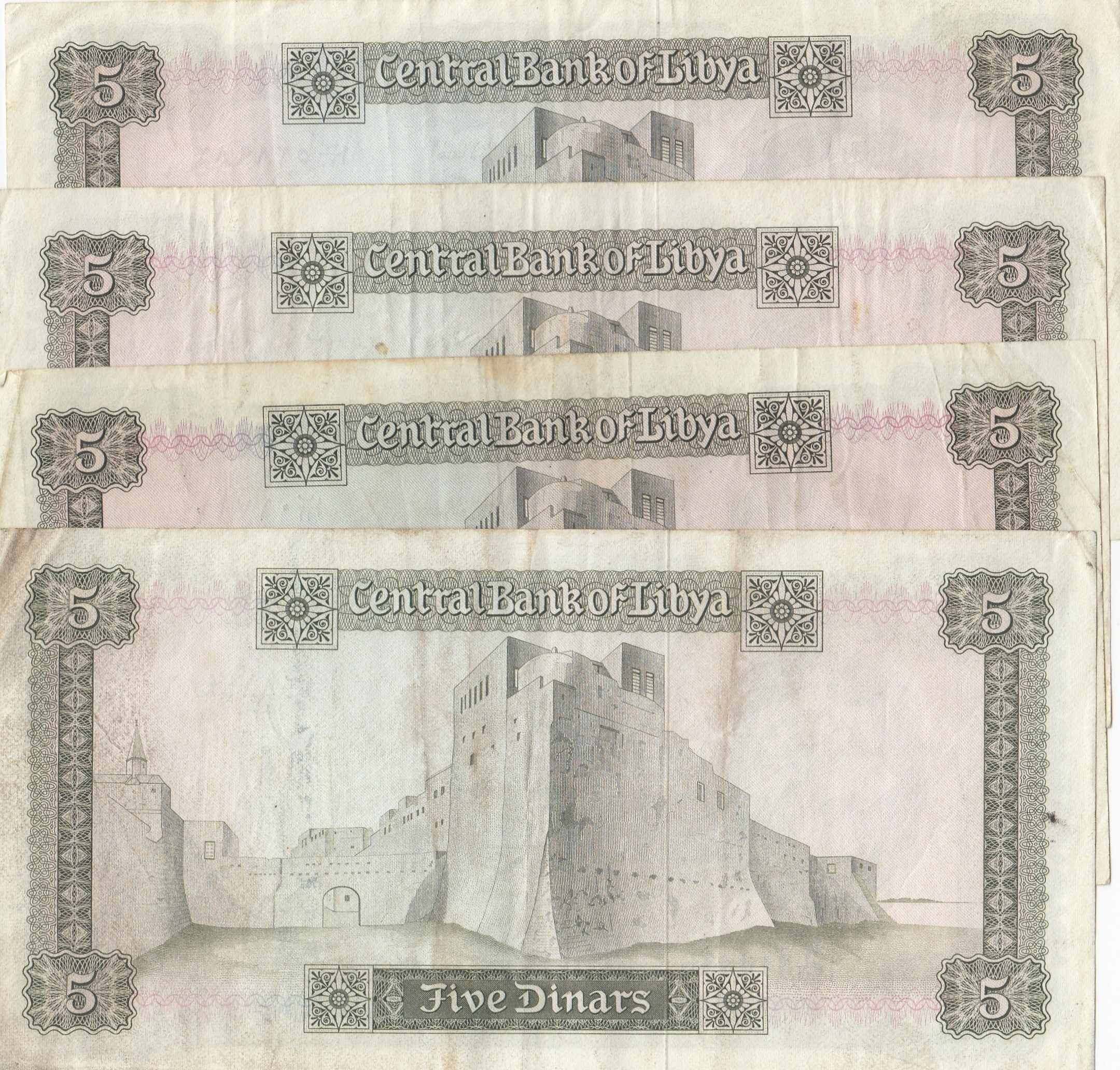 Libya, 5 Dinars, 1971, VF/ XF, p36a, (Total 4 banknotes)