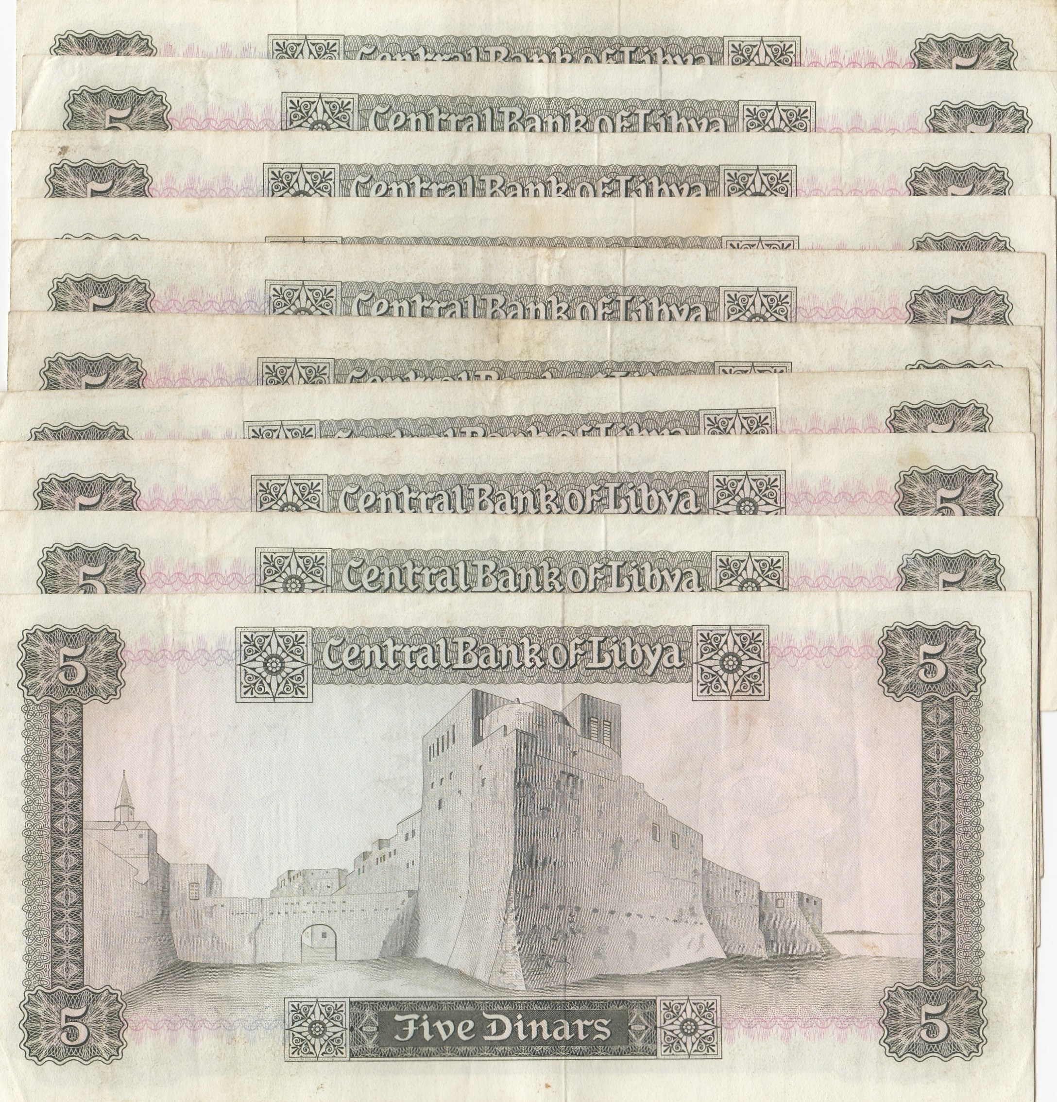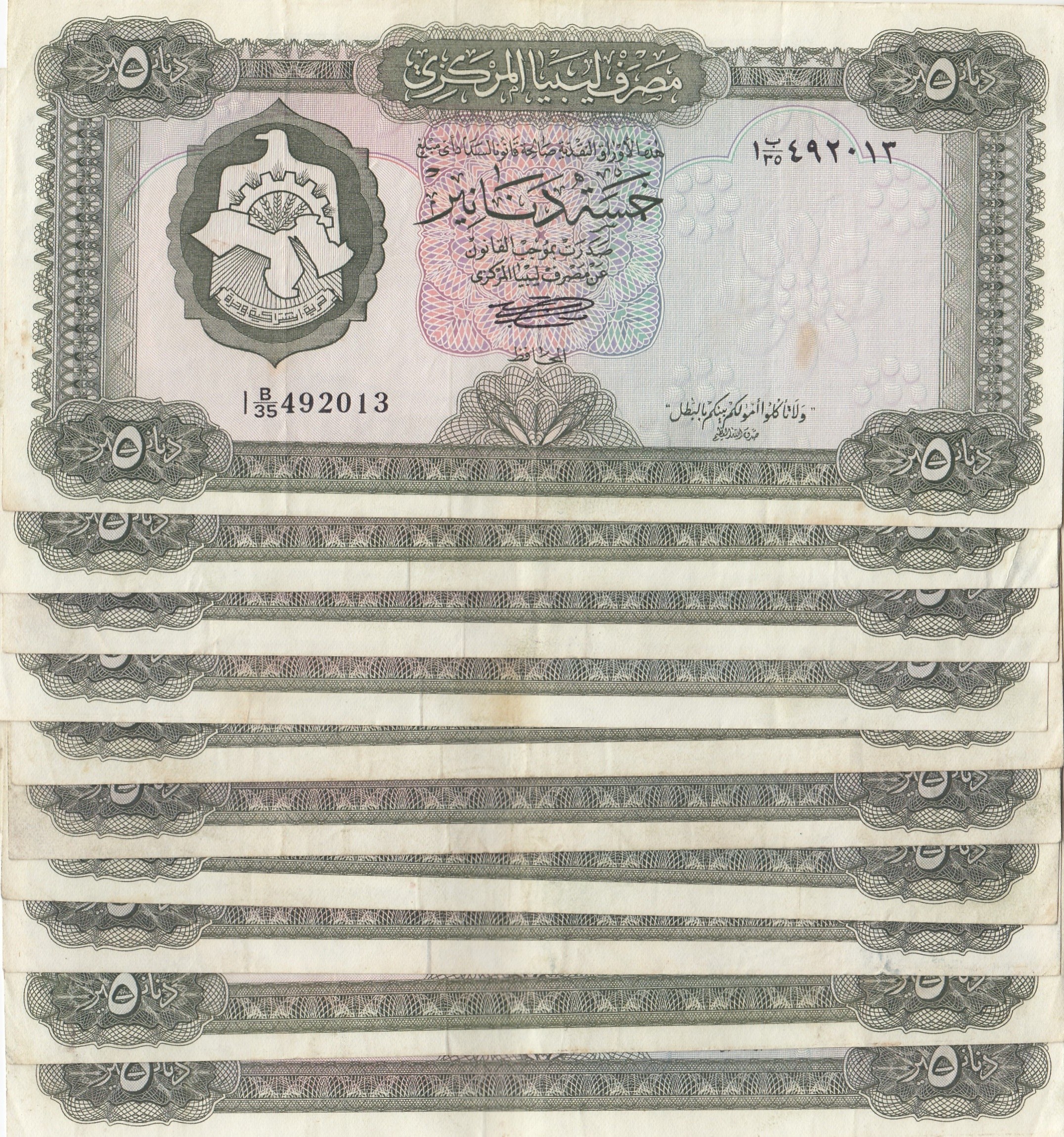 Libya, 5 Dinars, 1971, XF, p36a, (Total 10 banknotes)