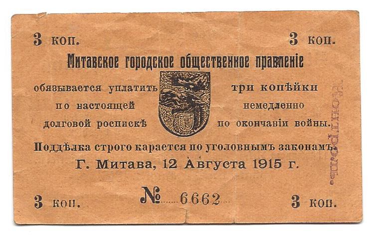 Banknot bez znaków wodnych, opisany na jednej stronie w języku rosyjskim druga strona w języku łotewskim.
