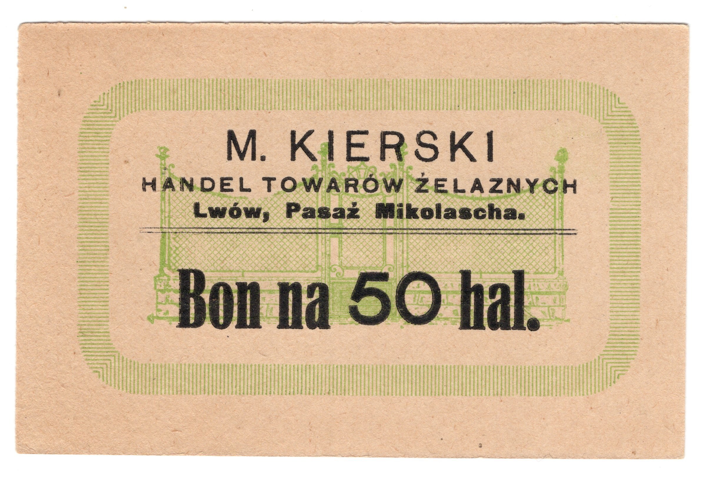 Lwów, M. Kierski Handel Towarów Żelaznych, 50 halerzy