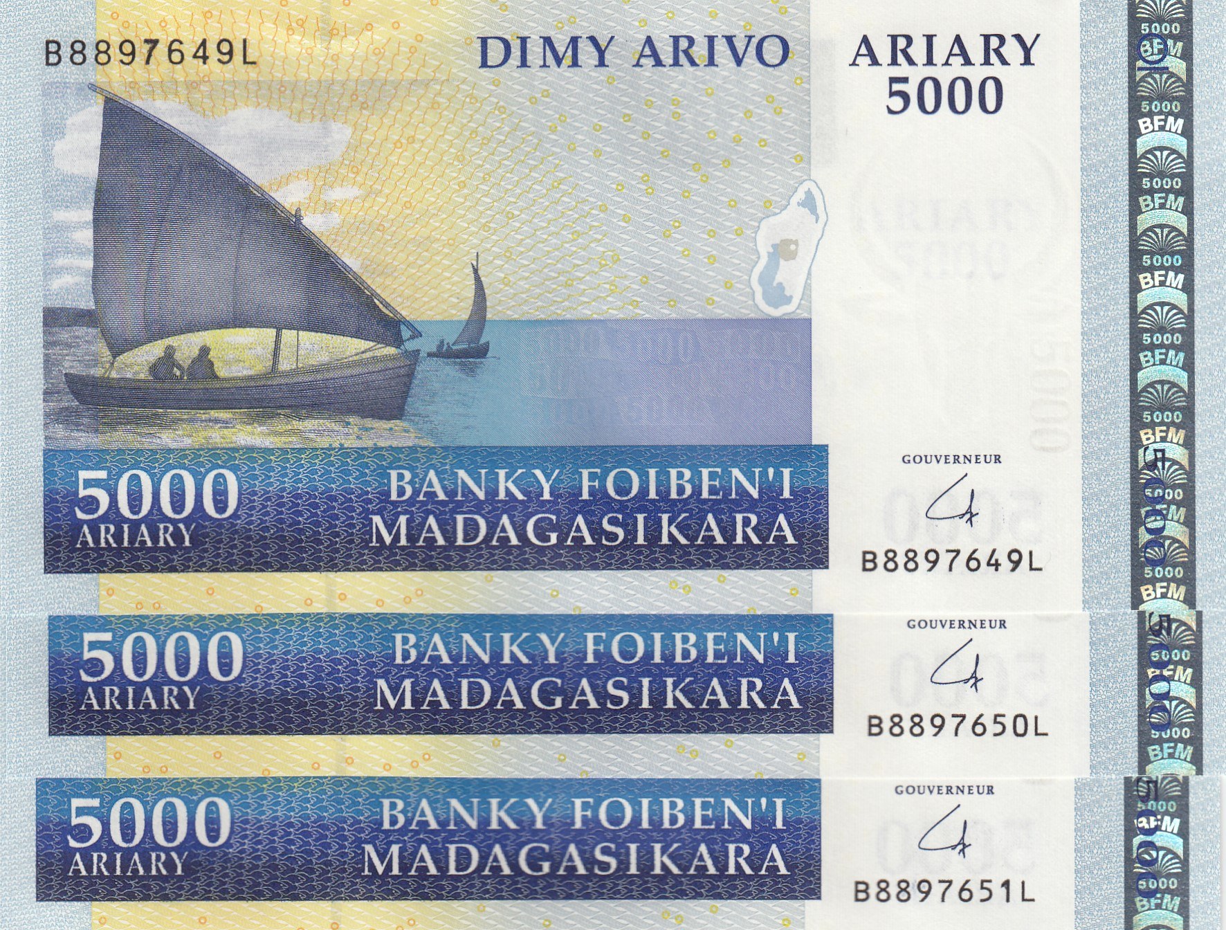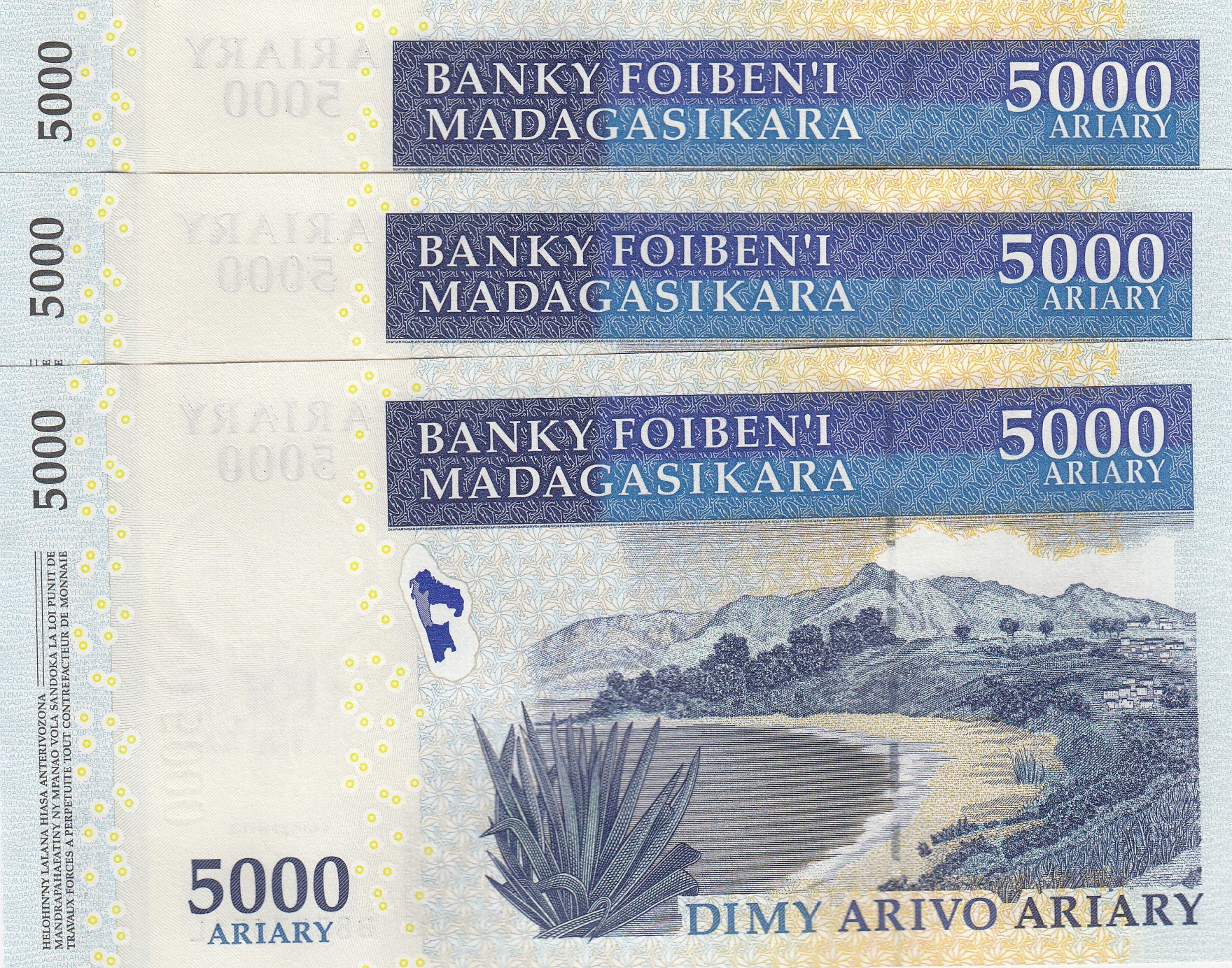 Madagascar, 5.000 Ariary, 2008, UNC, p93, (Total 3 consecutive banknotes)