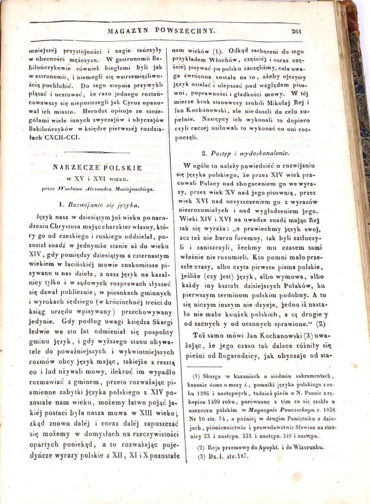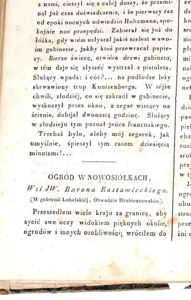 Na uwagę zasługują m.in. artykuły dot. Wrocławia, Wzmianka statystyczna o miastach powiatowych Guberni Wileńskiej: Kownie, Wiłkomierzu, Rossieniach i Szawlac'a; Rys historyi, obyczajów i języka Cyganów; Przepisy na romzaite wina i piwa; Hajducy przez Kazimeirza Władysława Wójcickiego itd.
