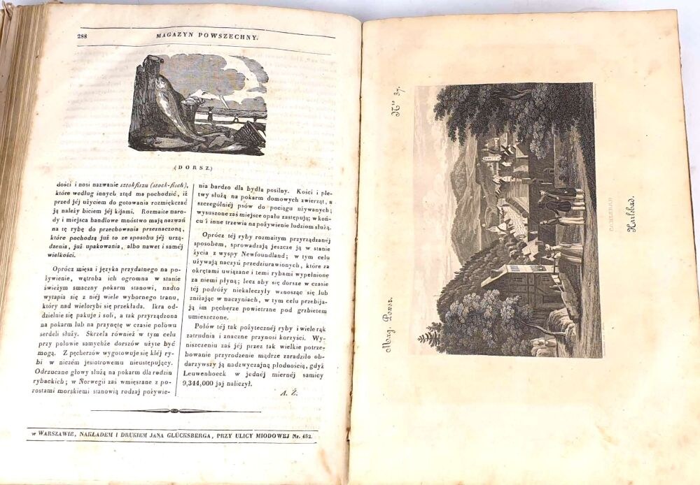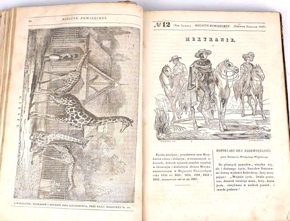 Warszawa 18339. Nakładem i drukiem J. Glucksberga. str. 413, (3), 3k. tablic- ilustr. (litoggrafie); czarno-białe ryciny w tekście (drzeworyty); format 18,5x26,5 cm,
