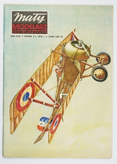 MAŁY Modelarz. Miesięcznik Ligi Obrony Kraju dla młodzieży. Nr 2/1974: Samoloty bojowe z I wojny światowej "Fokker II", "Morane", "Nieuport".
