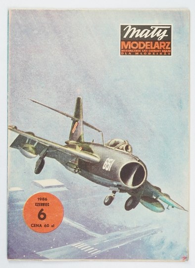 MAŁY Modelarz. Miesięcznik Ligi Obrony Kraju dla młodzieży. Nr 6/1986: Samolot myśliwski MIG-17 (Lim-6).