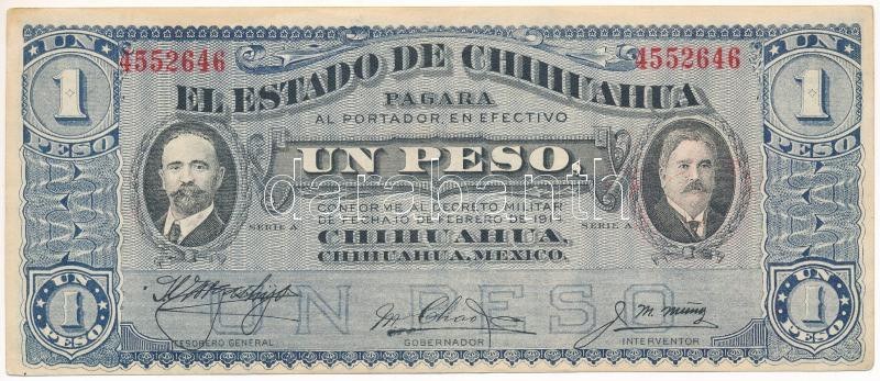 Mexikó / Forradalom / Chihuahua 1915. 1P hátoldalán piros, karélyos felülbélyegzéssel és dátummal T:AU folt Mexico ...