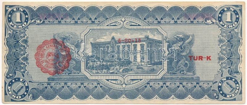 Mexikó / Forradalom / Chihuahua 1915. 1P hátoldalán piros, karélyos felülbélyegzéssel és dátummal T:AU folt Mexico / Revolution / Chihuahua 1915. 1 Peso with red scalloped overprint and date on back C:AU spot Krause P#S530