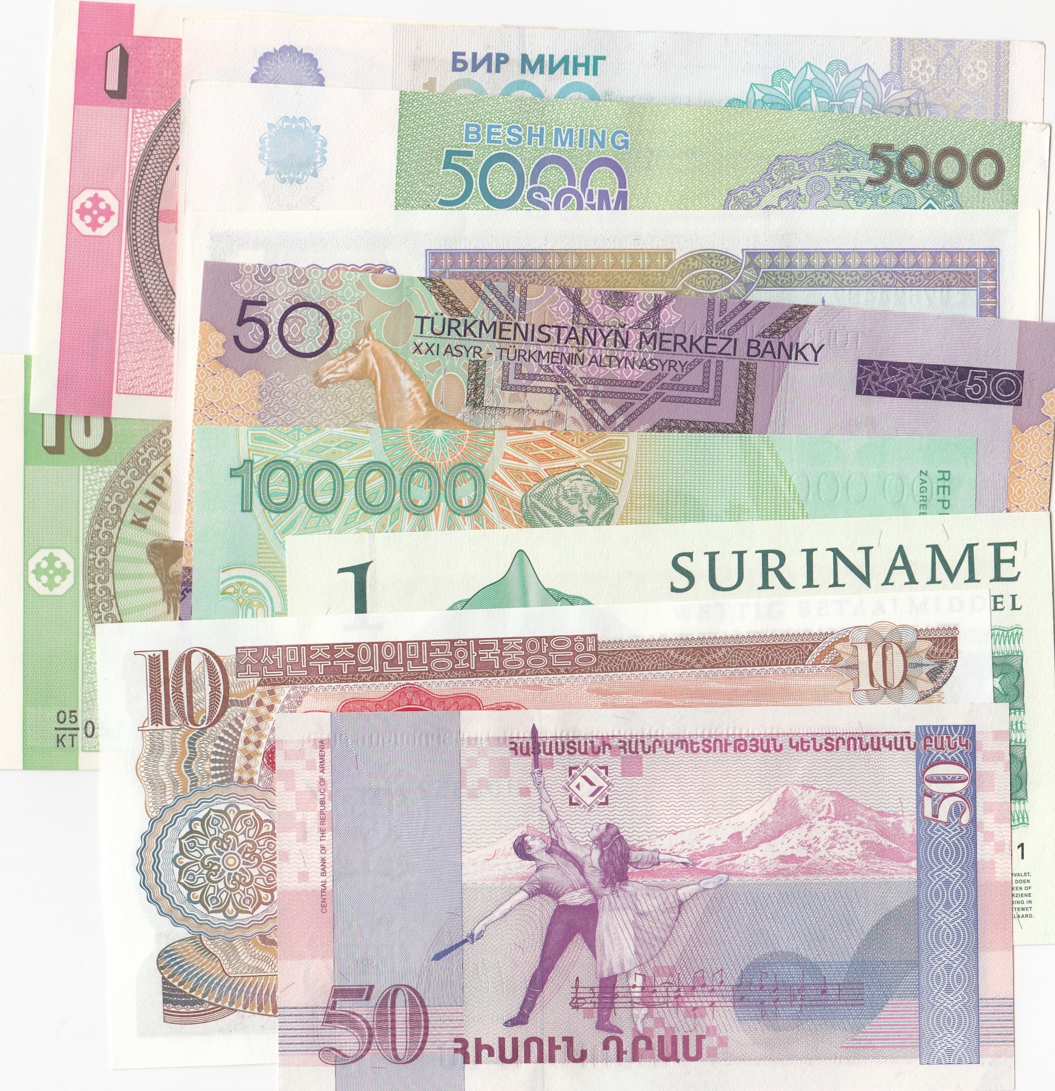 Mix Lot, 10 different banknotes in "UNC" condition