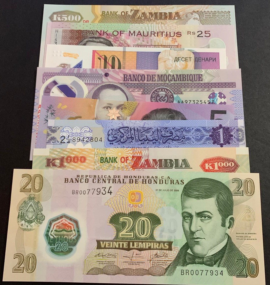 Mix Lot, 8 pieces of UNC polymer banknotes
